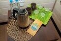 В номере - душ, туалет, одна кровать 160*200, раскладывающее кресло 90*200, комод для хранения вещей, TV, чайник, холодильник мини-бар. Постельное белье, полотенца, фен, одноразовые гигиенические принадлежности, тапочки и шапочка для душа входит в стоимость.