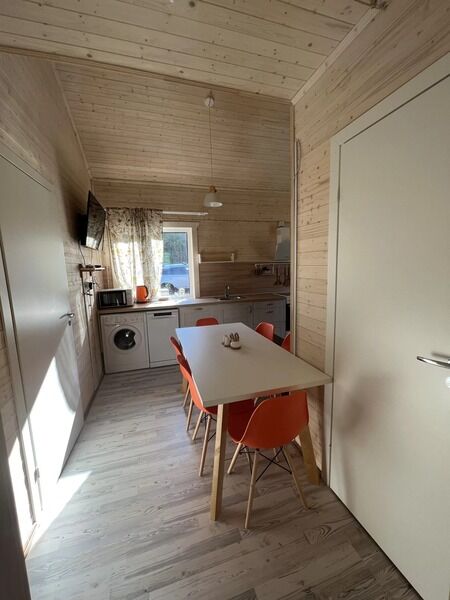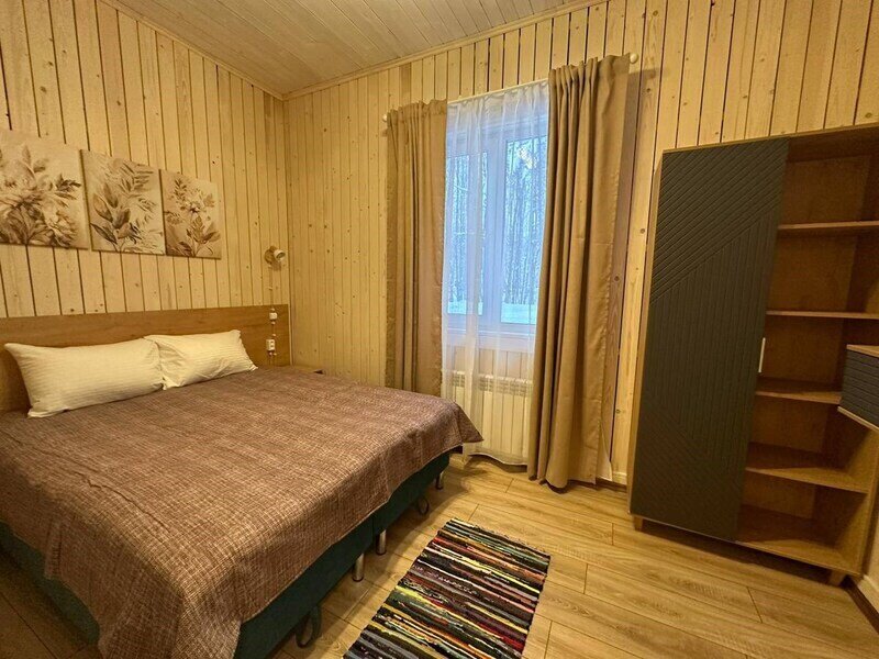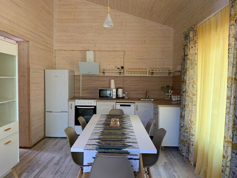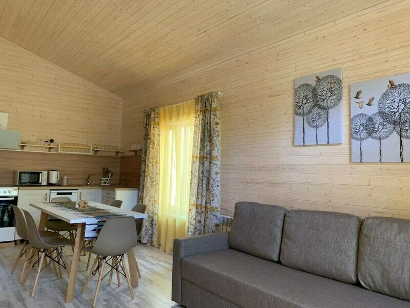 Теплый уютный и комфортный коттедж. В домике - душ, туалет, сауна, шкаф для хранения вещей, TV, полноценная кухня со всем кухонным оборудованием. Постельное белье, полотенца, фен, одноразовые гигиенические принадлежности, тапочки и шапочка для душа входит в стоимость.
