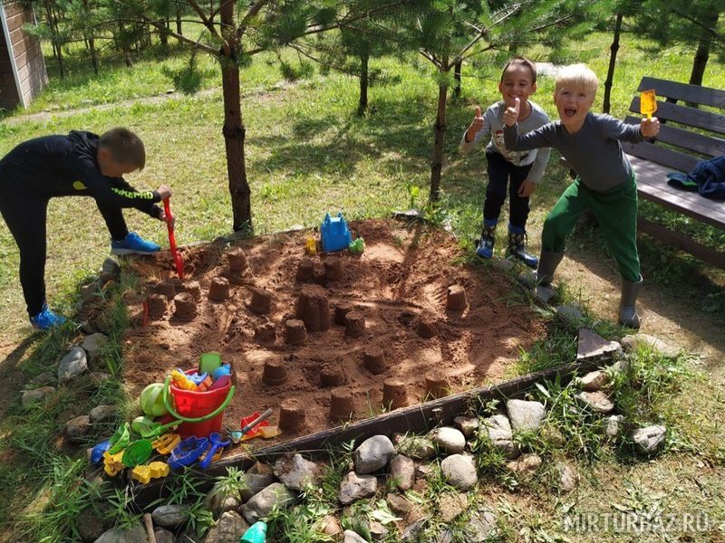 Для маленьких гостей на территории имеется детская площадка с песочницей.