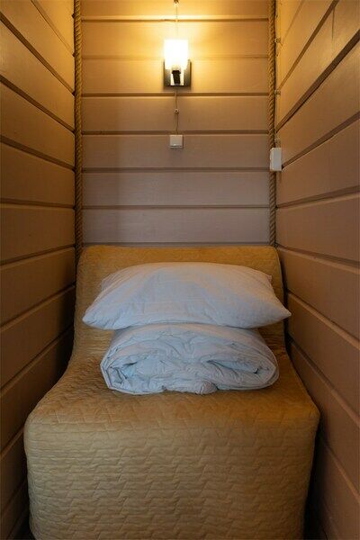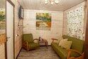 Домик на 9 человек, три спальни с модульными кроватями + диван в гостиной и два кресло-кровати. Максимальное количество человек в номере – 9. Теплый уютный и комфортный коттедж. В домике - душ, туалет (2шт), сауна, шкаф для хранения вещей, TV, полноценная кухня со всем кухонным оборудованием. Постельное белье, полотенца, фен, одноразовые гигиенические принадлежности, тапочки и шапочка для душа входит в стоимость.