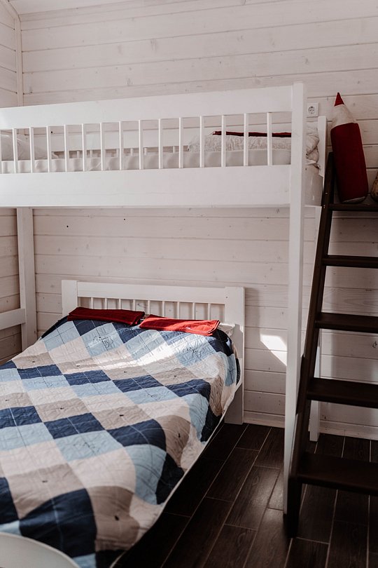 Уютный семейный эко-дом с двумя спальнями, просторным холлом, ванной комнатой и кухней.