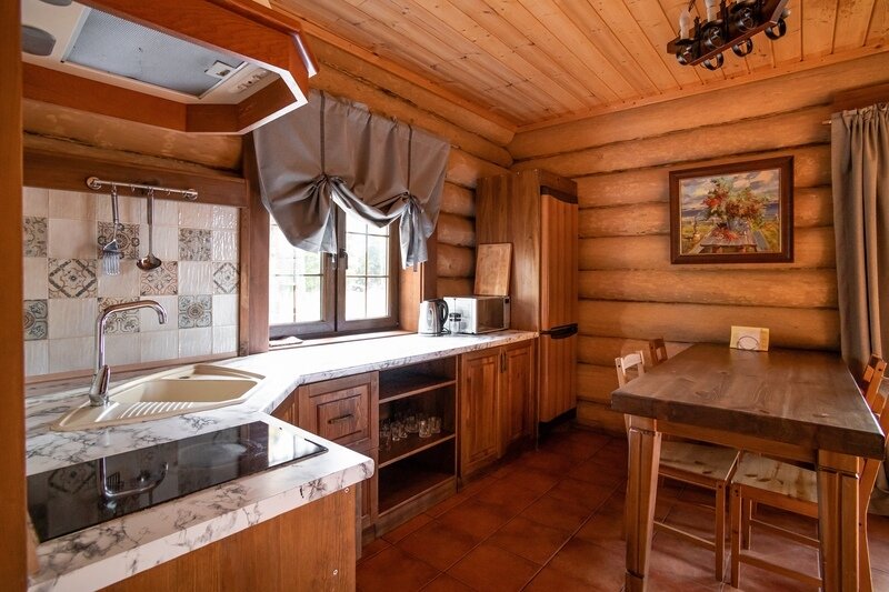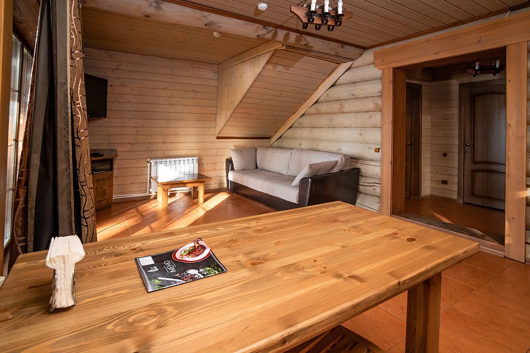 коттедж - уютный рубленый деревянный дом с авторской мебелью ручной работы, выполненный полностью из экологически чистых материалов, первый этаж: прихожая, холл, санузел, спальня, большая кухня-гостиная; второй этаж: холл с двумя раскладными креслами, спальня, санузелУслуги и удобства
