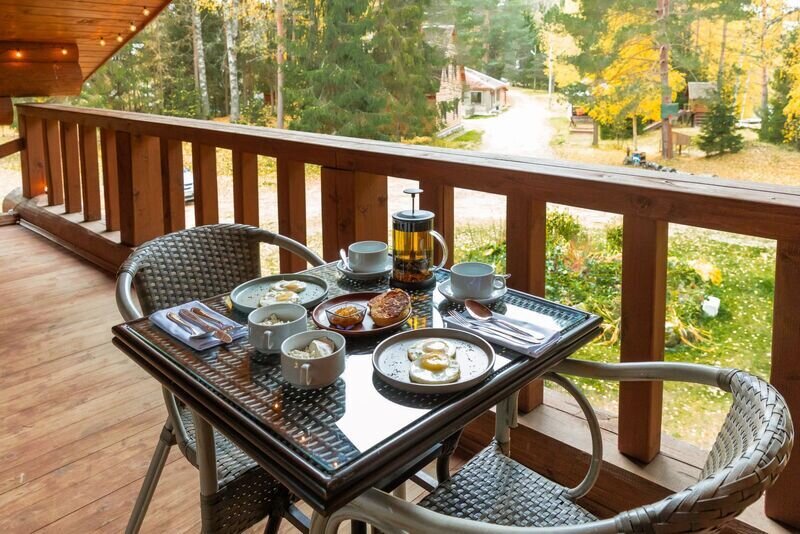 НедостаткиДомики корасивые, но абсолютно отсутствует звукоизоляция, все двери скрипят , мебели по минимуму- не хватает полочек в ванной, нет фена , мебель на балконе на двоих, хотя нас были четверо. Уборки нет от слова вообще. Были неделю - один раз по нашей просьбе заменили полотенца и дали туалетную бумагу. На этом все! Нет лежаков, хотя территория позволяет и они необходимы. Плавали каждый день- погода располагала. Завтрак вкусный, но каждый день глазунья в течение 7 дней- - можно бы разнообразить , как с кашами. Хотя ты каждый день разнаые. Рыбы не наловили )), было жарко, Грибов и ягод тоже вблизи нет . Полный релакс гарантирован . Виды очень красивые !