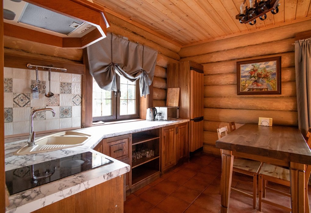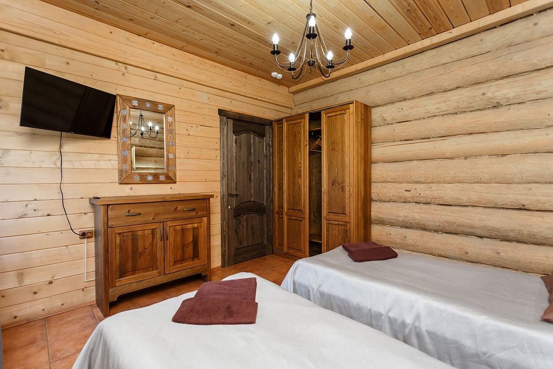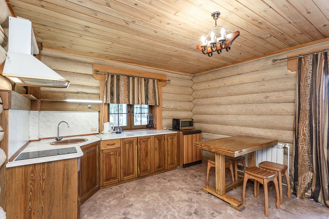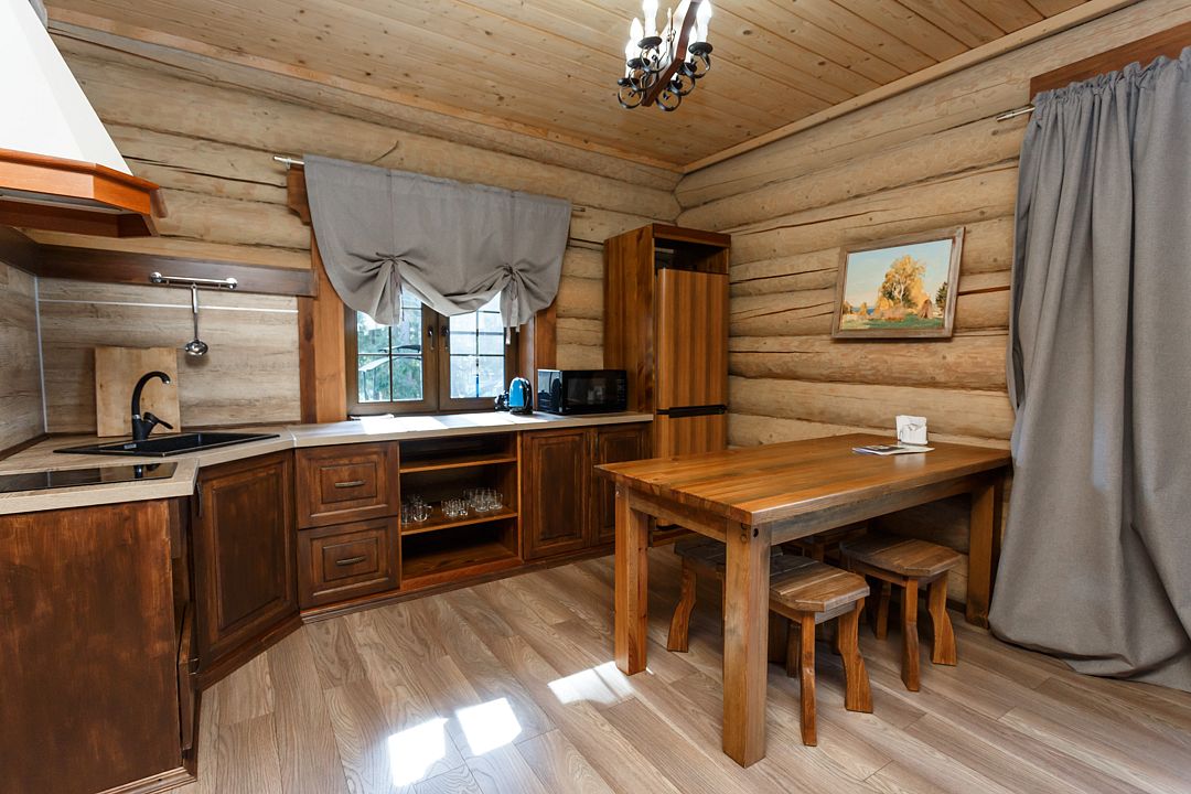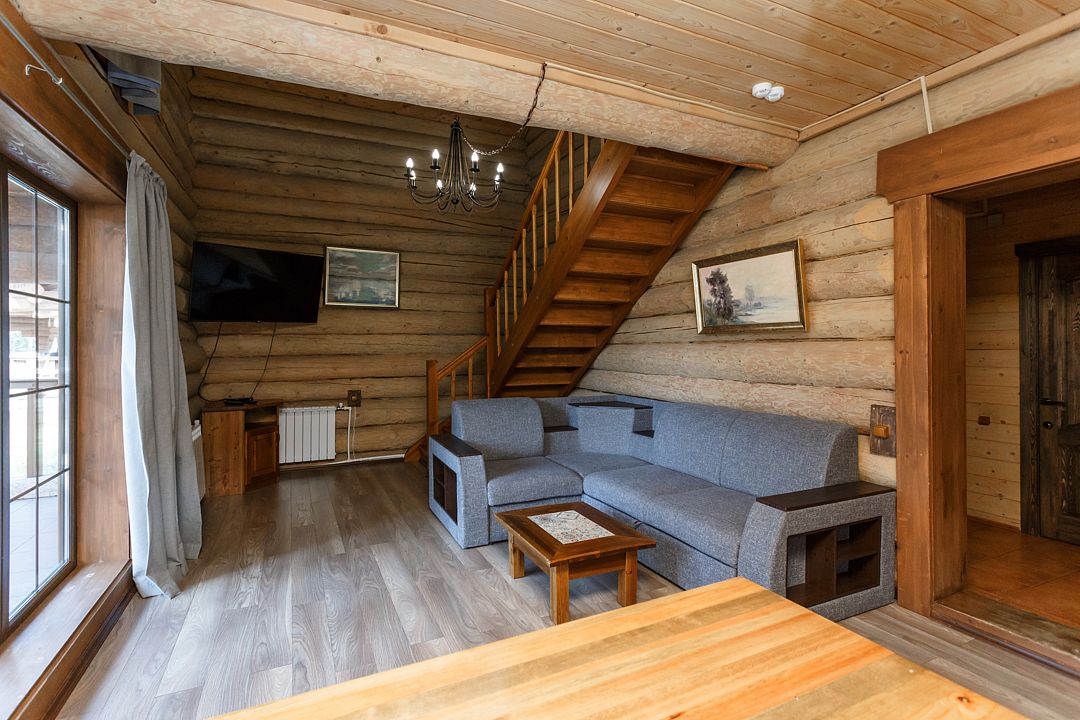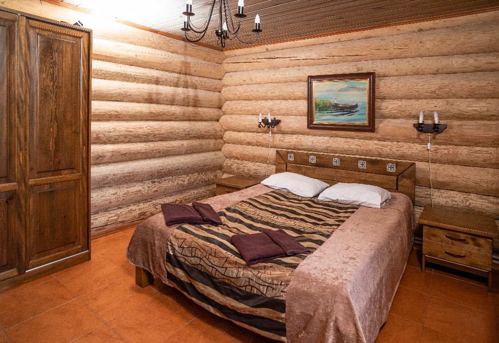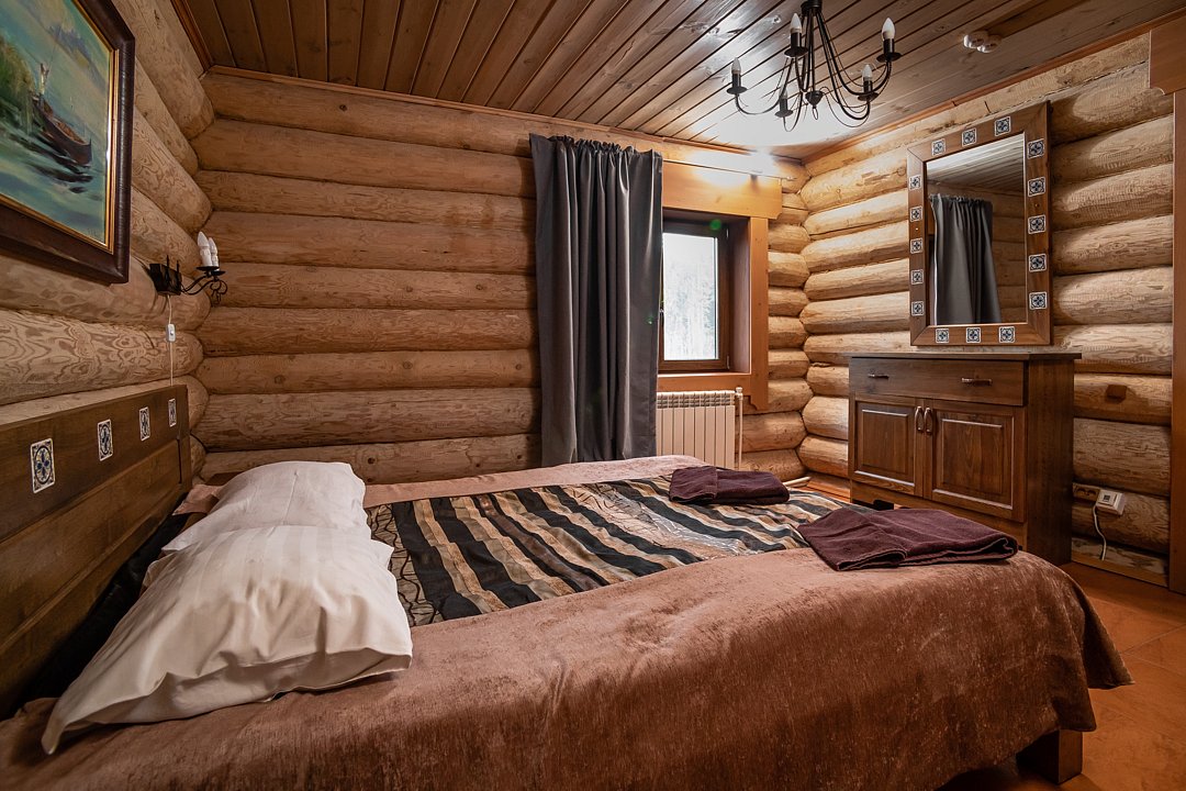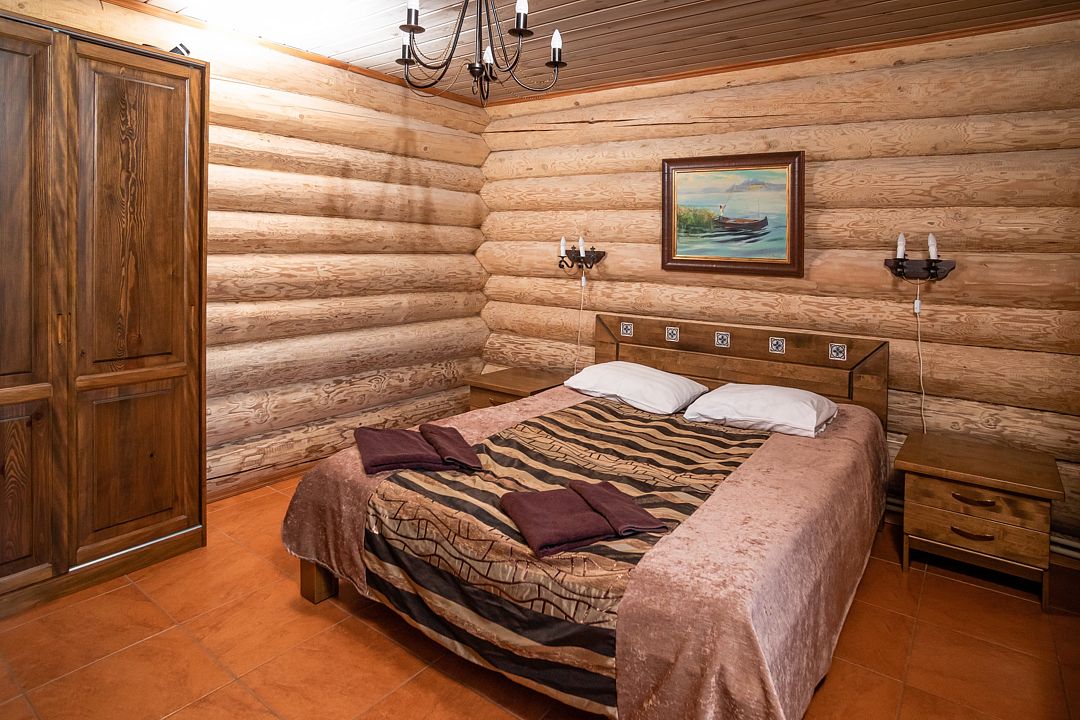 Отдельностоящий коттедж на 3 спальни— уютный рубленный деревянный дом с авторской мебелью ручной работы, выполненный полностью из экологически чистых материалов. Дом расположен на берегу озера.