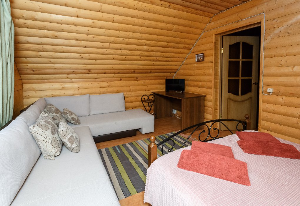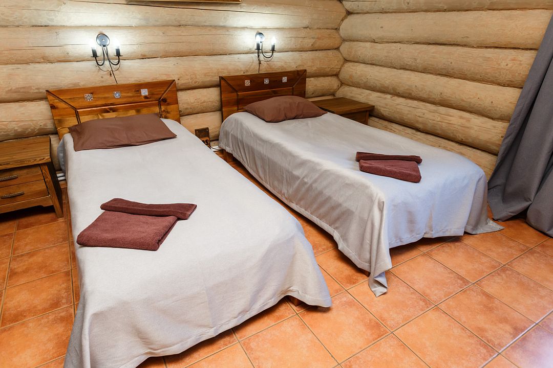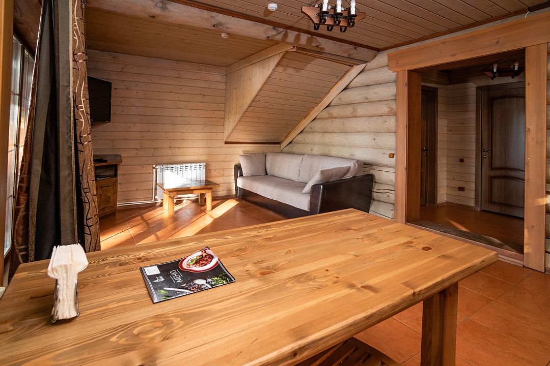 НедостаткиМы снимали комнату номер 5 в двухэтажном домике. В комнате две кровати, две тумбочки, телевизор, на двоих по паре стаканов. Нет микроволновки. Нет стульев, стола и тапочек не хватало.На веранде рядом тоже нет ничего. Только напротив домика , где мангал с небольшой крышей, есть деревянный стол и две лавки. Мы были в августе, был дождь, сидеть под дождем нереально . У нас с собой было все для отдыха на природе. Поэтому насобирав грибов, мы достали все свои прибомбасы и хорошо посидели на веранде. Берите все с собой или кушать только в местном ресторане. Мы там завтракали, все понравилось.