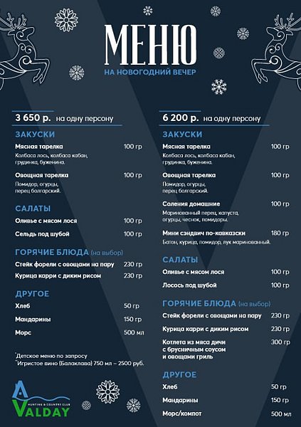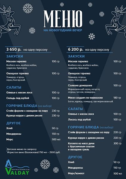 ВАЖНО! Новогодний ужин оплачивается ДОПОЛНИТЕЛЬНО по предварительному заказу.