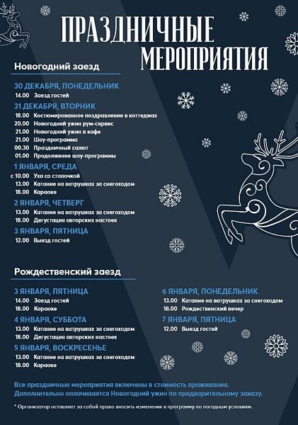 Все праздничные мероприятия включены в стоимость проживания.