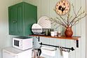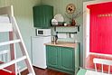 В доме: деревянная двухъярусная кровать (снизу двуспальная, сверху односпальная), прикроватные светильники, шкаф, зеркало, потолочный вентилятор, обеденный стол, стулья и табуреты, небольшая кухня, укомплектованная микроволновой печью, мультиваркой, холодильником, чайником, мойкой, необходимой посудой и столовыми приборами.