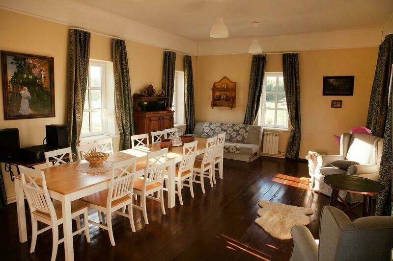 В столовой главного корпуса предлагается ежедневное трехразовое питание. Продукты, которые попадают на стол отдыхающих – это преимущественно то, что выращено и произведено на приусадебной ферме. Чтобы заказать питание, свяжитесь с управляющим, его телефон можно получить при бронировании проживания!