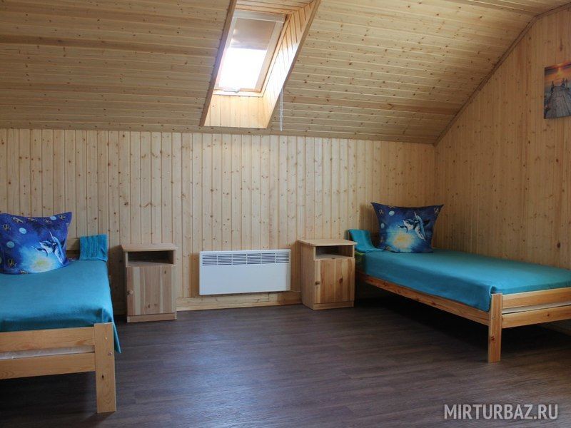 На первом этаже расположен двухместный номер, на втором три одноместных, что позволяет парам или родителям и детям комфортно разместиться и не зависеть друг от друга.