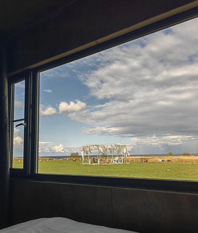 Для проживания гостей подготовлены панорамные дома-контейнеры с захватывающим видом на озеро, оборудованы всем необходимым. В вашем распоряжении кухня, оснащенная плитой, холодильником и набором посуды. Спальня с панорамным окном, ванная комната с гигиеническими принадлежностями, а также гостиная и обеденная зона.