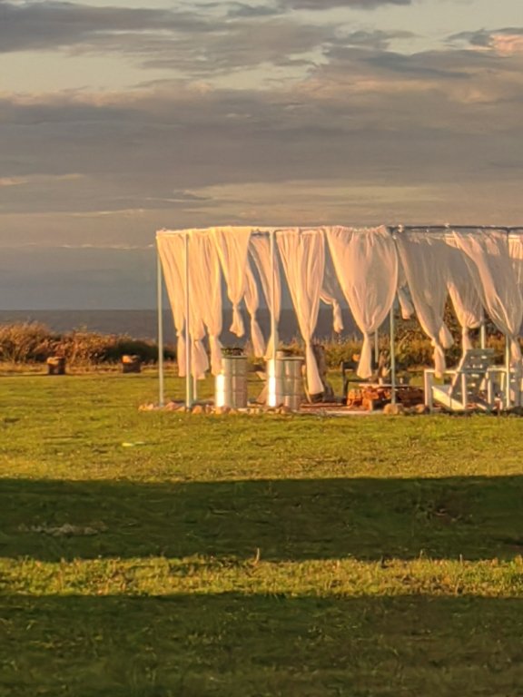 Также вы можете приехать со своей палаткой или автодомом и расположиться в кемпинге. Предоставляется с доступ к электричеству, воде и туалету, а также есть возможность воспользоваться кухонно-обеденной зоной с холодильником, чайником, посудой, приборами и микроволновкой.