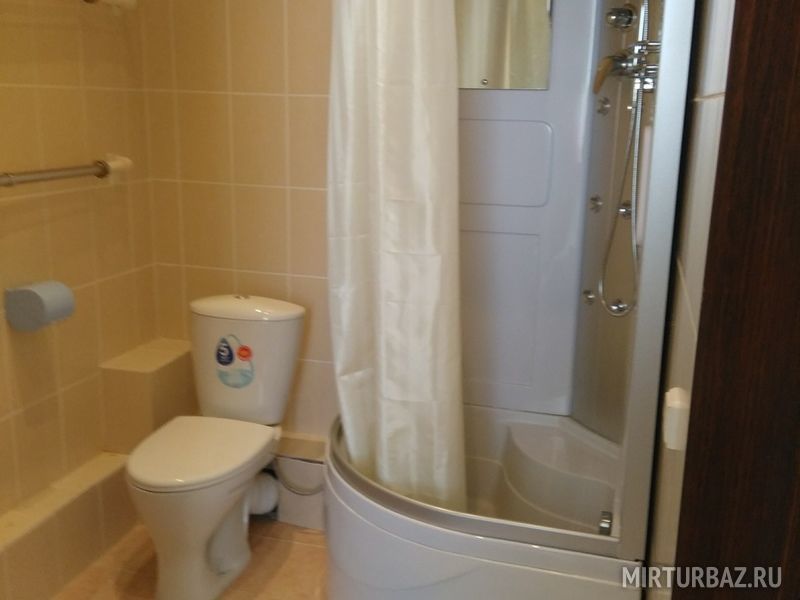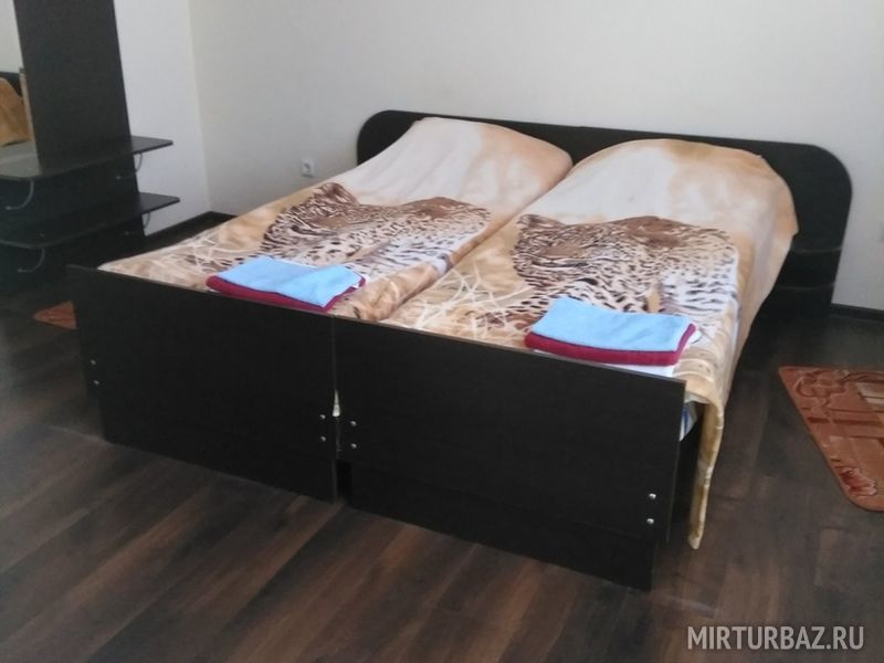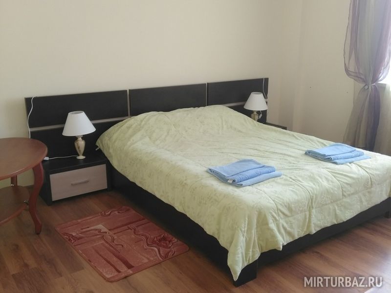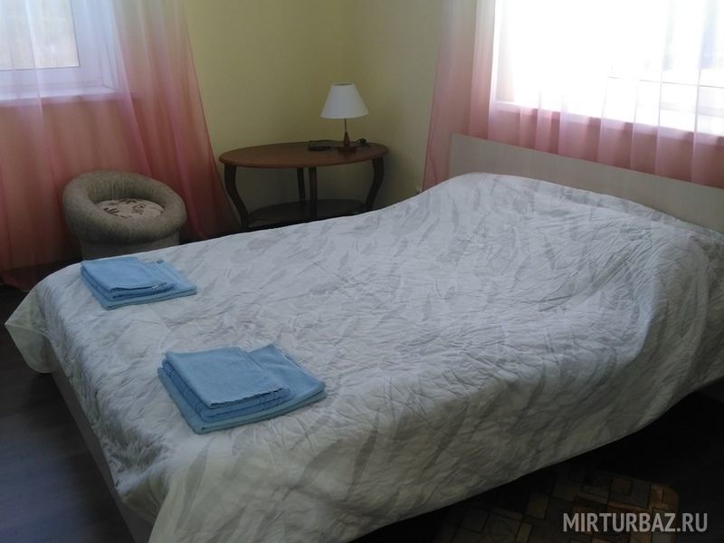 Шикарный 4-х этажный дом на 12 номеров, полностью благоустроенные номера. На нижнем этаже есть тренажёрный зал, бильярд. Кроме того на территории имеется деревянный коттедж для проживания до 10 человек.