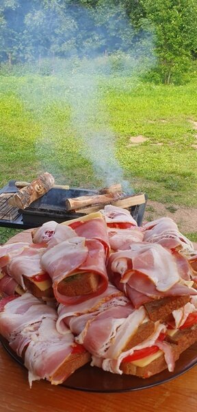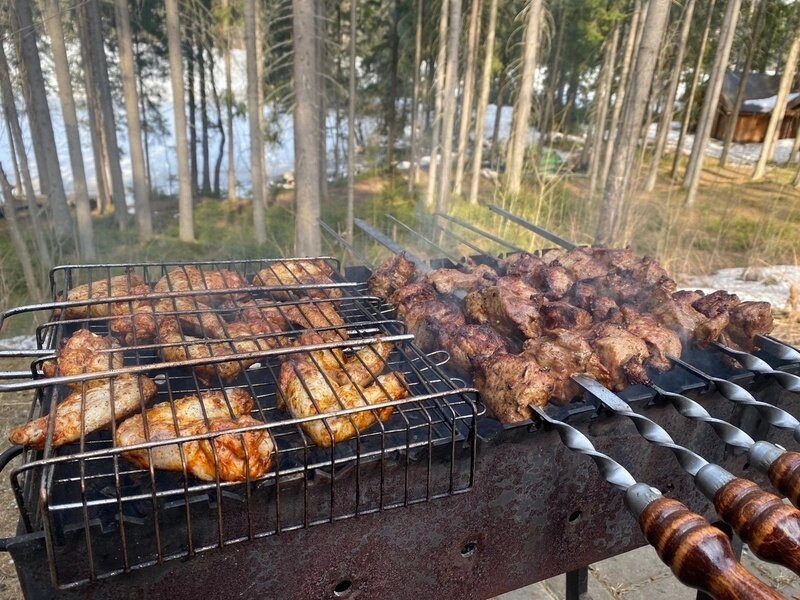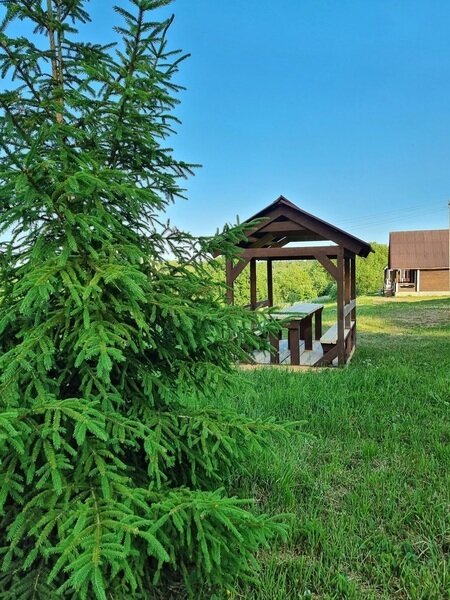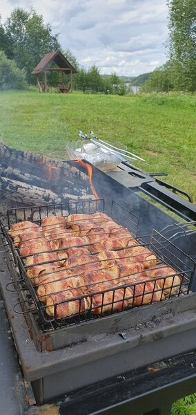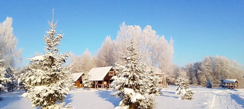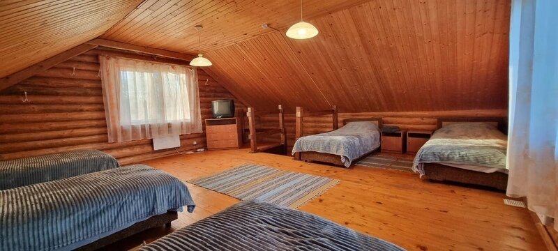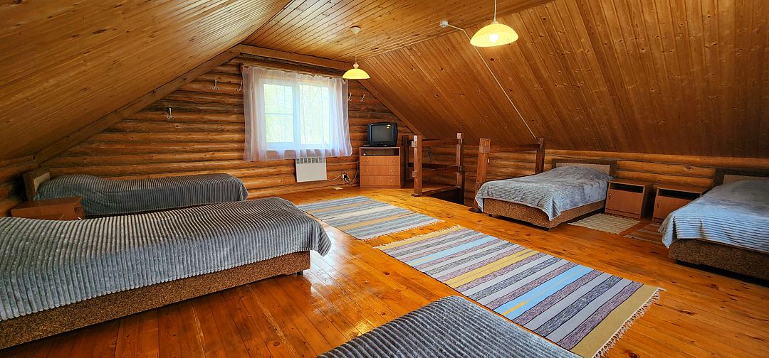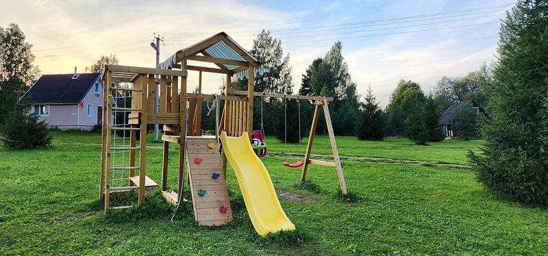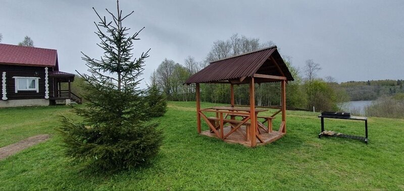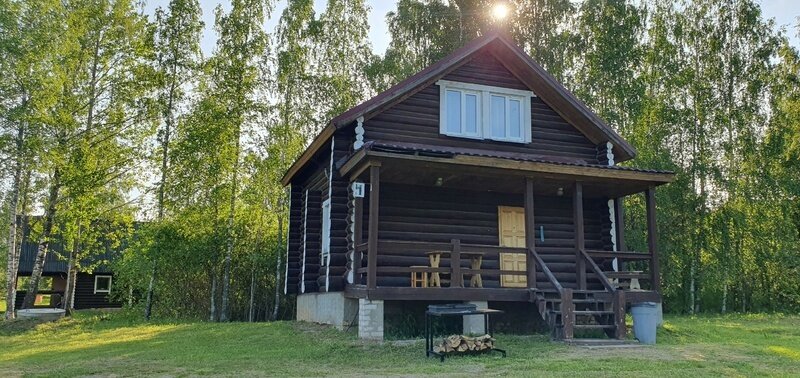 На территории находится 4 уютных коттеджа вместимостью до 9 человек, банька, беседки, мангалы для приготовления еды на свежем воздухе, волейбольная площадка и пирс.