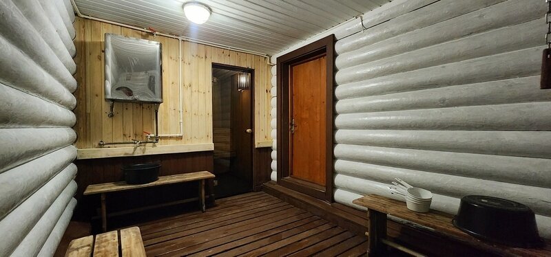 Инфраструктура: простыни, шапочки, обливное ведроМинимальное время аренды: 2 часаВремя работы: до 23.00Русская баня с комнатной отдыха.