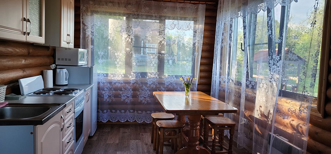 Во всех домах полностью оборудованная кухня (посуда, плита, электрочайник, микроволновка, холодильник), телевизор, постельное белье, полотенца.