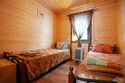 Современных двухэтажный деревянный коттедж c собственной инфраструктурой и номером класса «комфорт». В доме к вашим услугам гостиный зал, две спальных комнаты, кухня и санузел.
