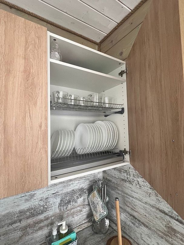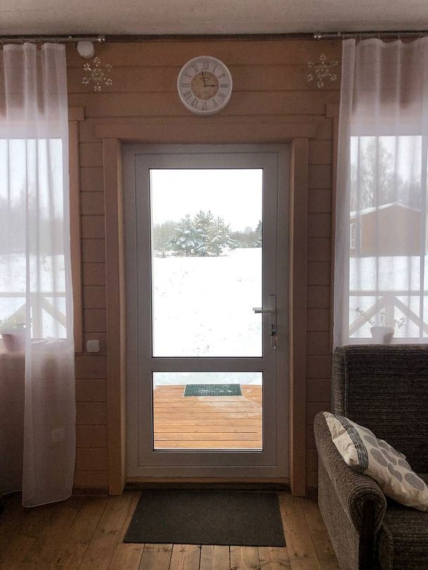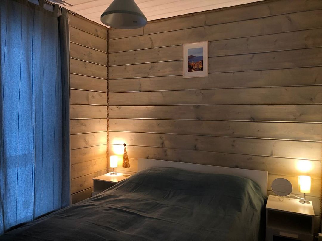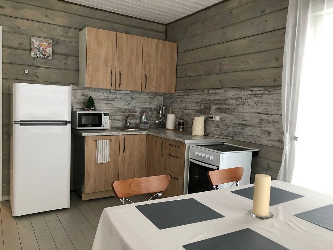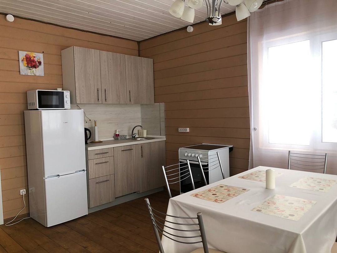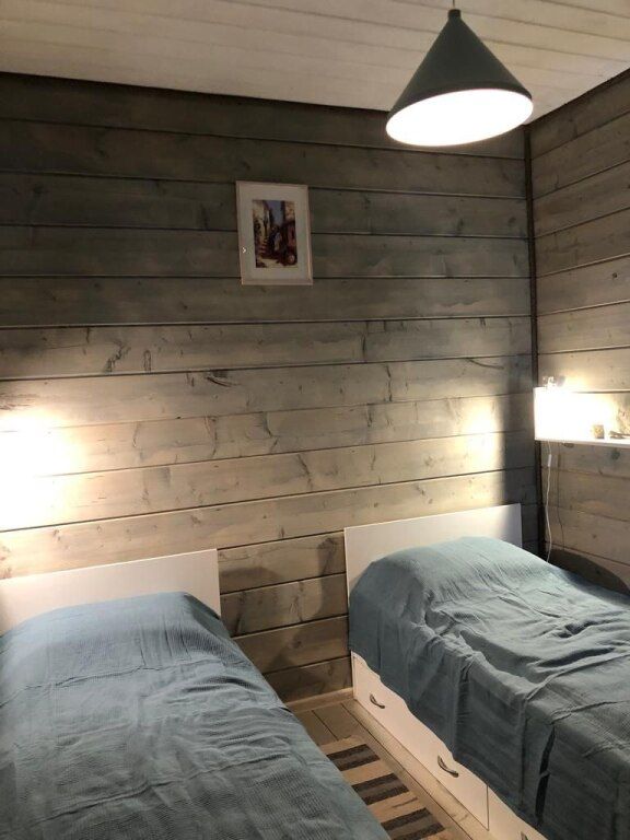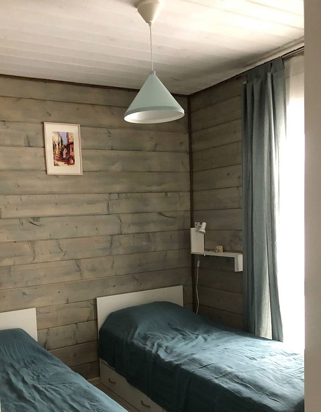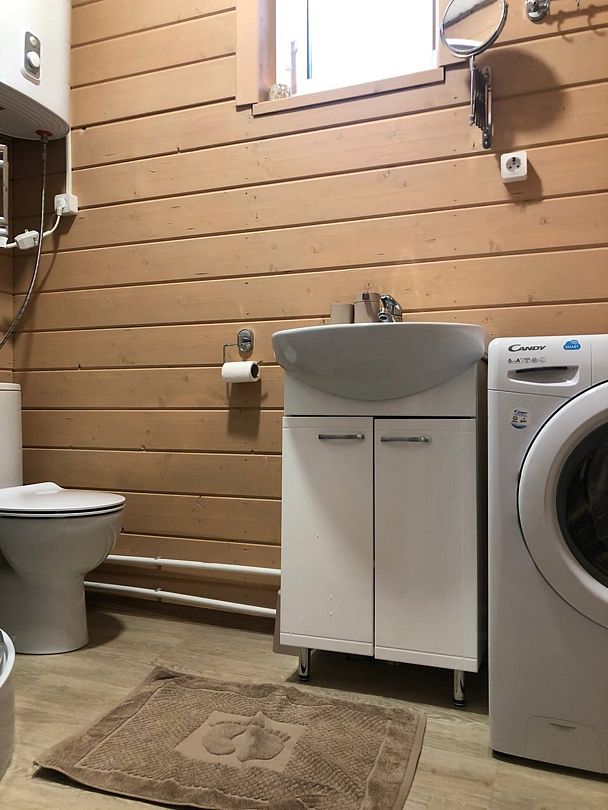 В домике есть стиральная машина, душевая кабина, холодильник, посудомоечная машина, микроволновка, газовая плита, телевизор (триколлор). Две спальни (в 1-ой — одна двухместная кровать, 2-ой — две одноместные кровати) и гостиная. В гостиной раскладывающийся диван, это дополнительное спальное место на двоих.