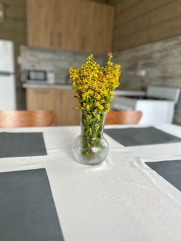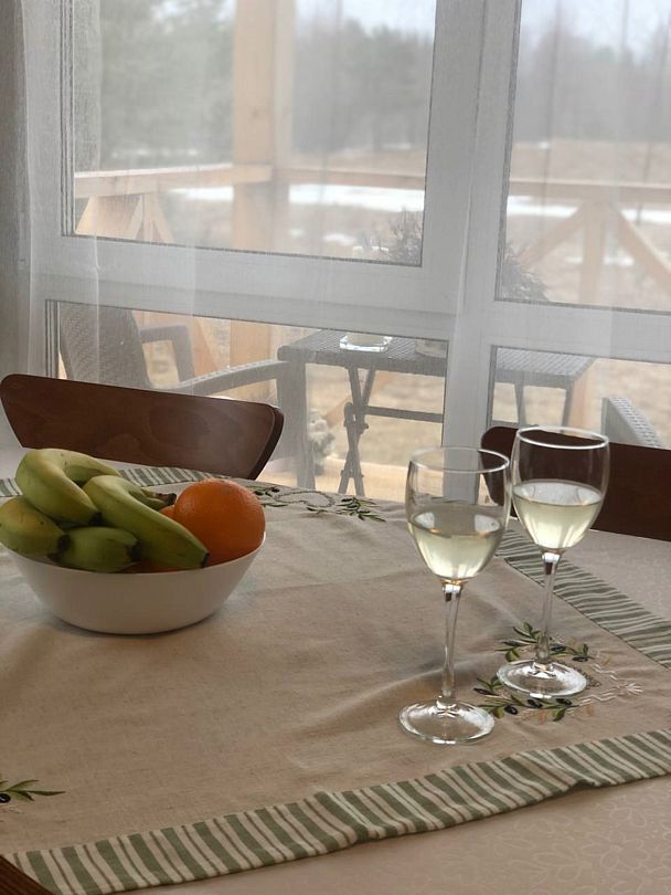 В коттедже «Лесной» раздвижной стол на 10 человек, в коттедже «Луговой» — на 8 человек.