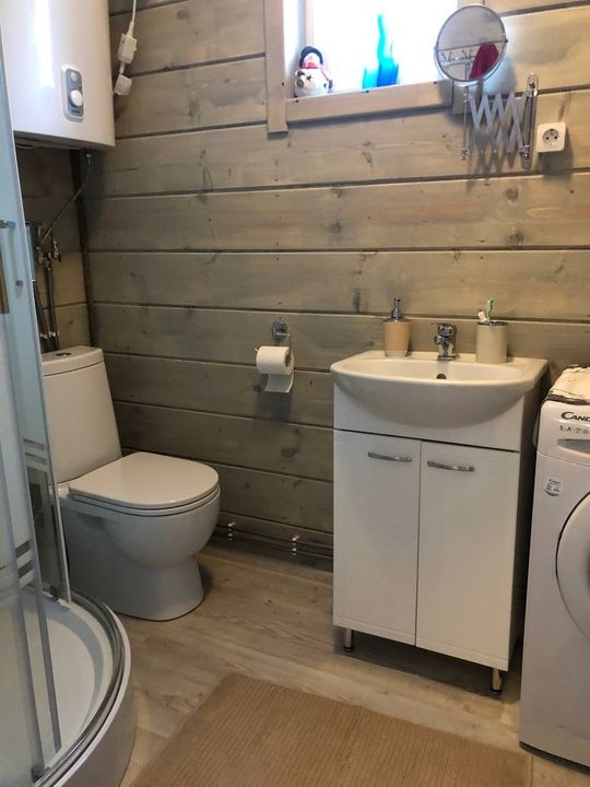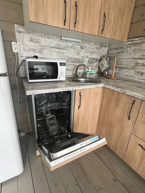 В домике есть стиральная машина, душевая кабина, холодильник, посудомоечная машина, микроволновка, электрический чайник, электрическая плита, телевизор. (СМАРТ-ТВ).