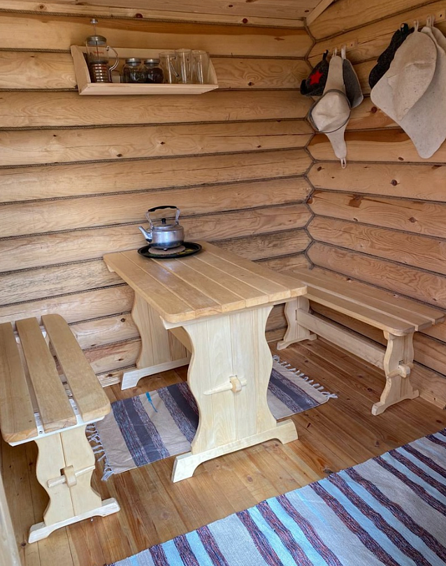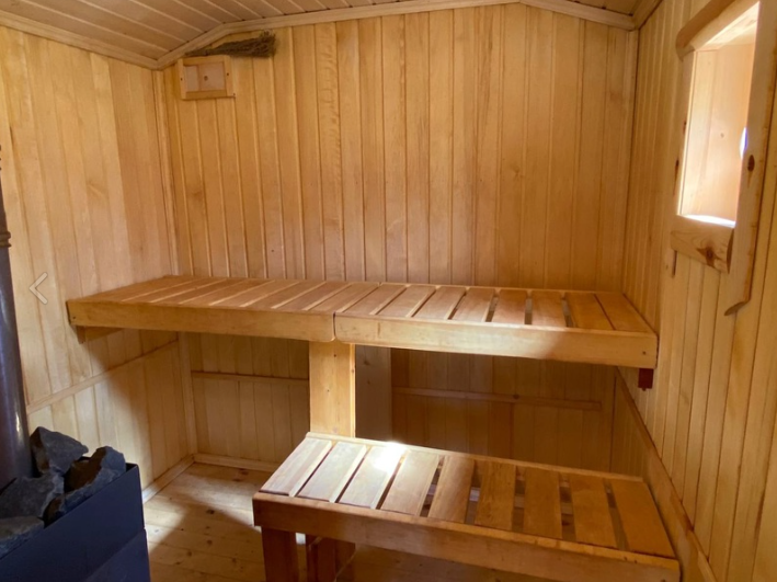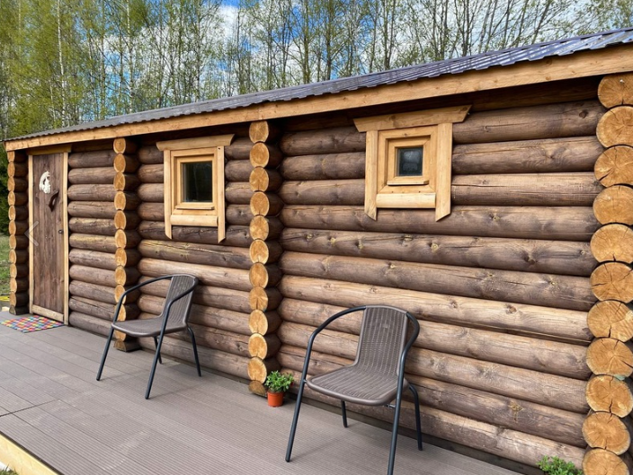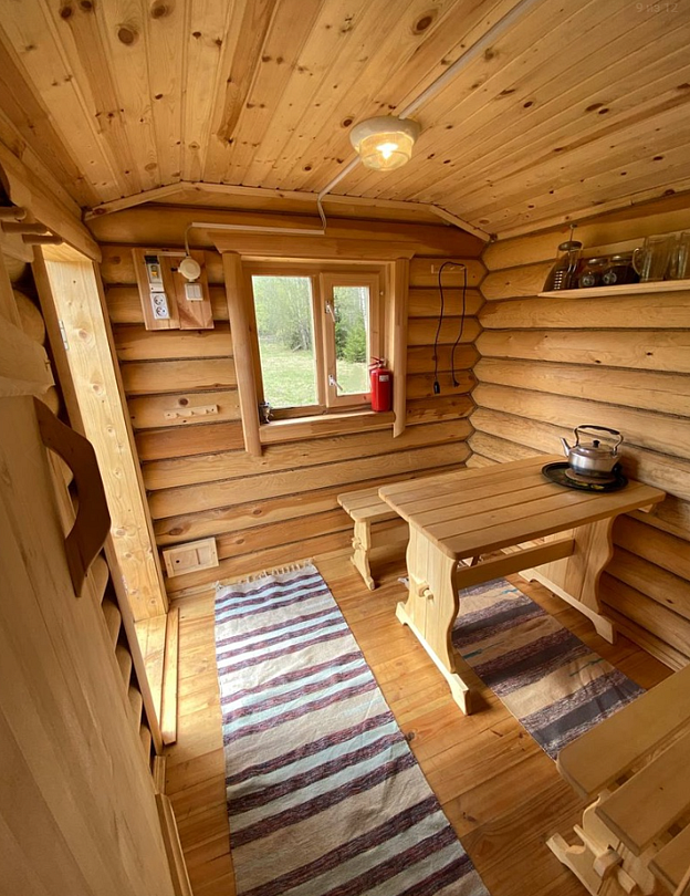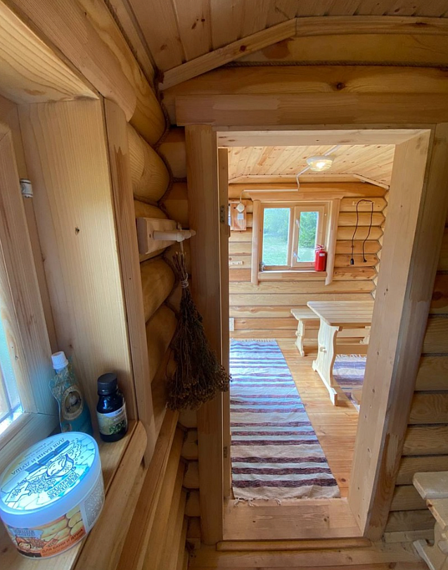 Инфраструктура: зона отдыха, простыни, шапочкиБаня сделана из экологически чистых материалов — кругляка.