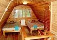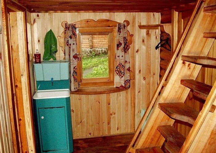 В нем есть: инфракрасные обогреватели, которые обеспечивают тепло в любое время, умывальник, мини-холодильник, чайник. Туалет находится на улице рядом с каждым домиком (деревянный, обогреваемый, освещаемый). Им пользуются исключительно гости, проживающие в домике. Удобства: Wi-Fi, кондиционер, flat screen, television, сейф в номере, мини-бар, телефон.