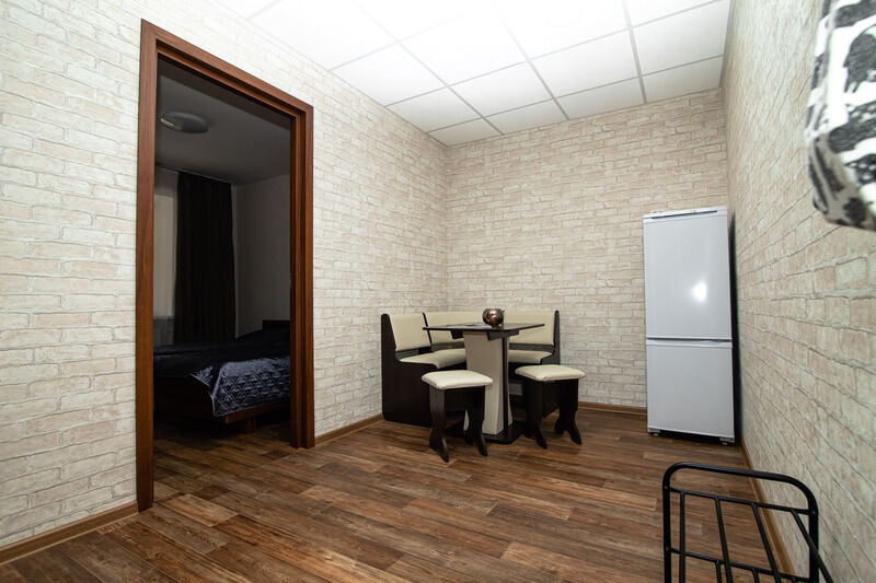Гости могут выбрать между уютными двух- и трехкомнатными номерами, оборудованными всем необходимым для приятного отдыха. В каждом блоке удобные общие санузлы. На первом этаже расположена просторная столовая-кафе, где в любое время доступны чай, кофе, посуда и микроволновая печь.