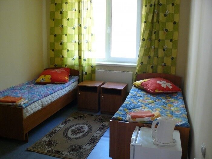В номере: с/у, душ, кровать, постельные принадлежности, тумбочки, шкаф, холодильник, ТВ, чайник.