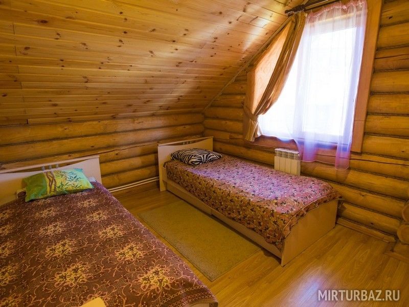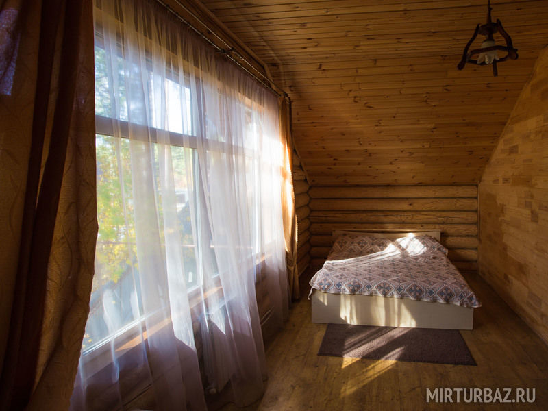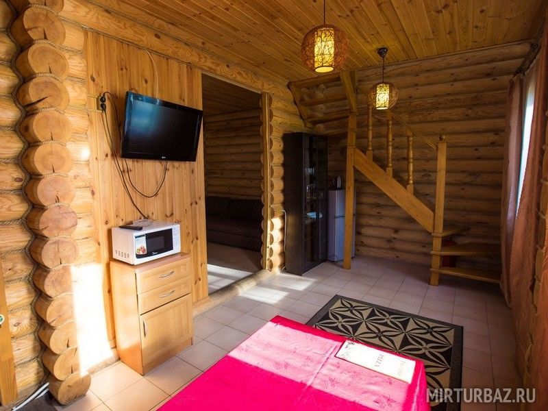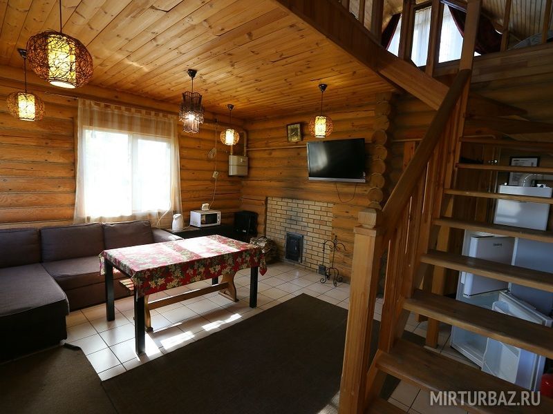 В доме имеется баня, холодильник, СВЧ-печь, посуда. На втором этаже большая мансардная комната с мягкими диванами и столом, за которым может расположиться большая дружная компания. На улице есть еще один столик и мангал. Возможна аренда домика по часам, подробности уточняйте у администратора.