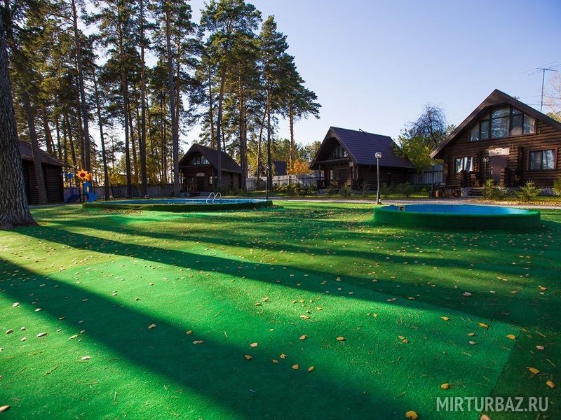 Двор заимки оформлен мягким покрытием, что дает возможность отдыхать комфортно и в чистоте. Не территории два бассейна, где можно весло и безопасно играть детям, или расслабиться после баньки взрослым.