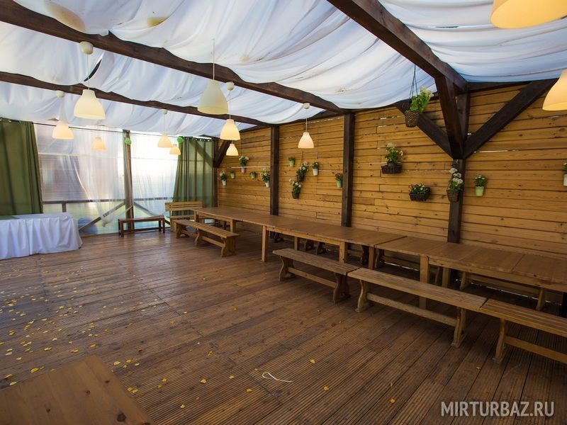 Беседка рассчитана на 50 посадочных мест, оформлена в изысканном и простом стиле летнего настроения.