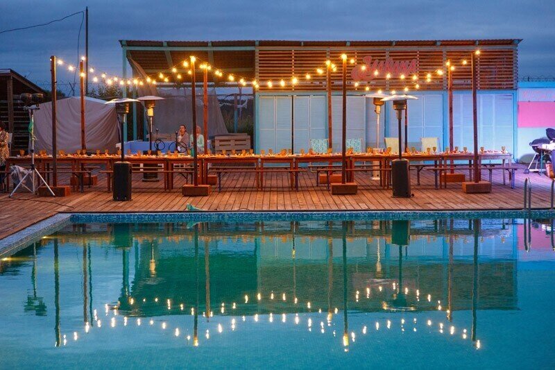 На территории тут есть баня на дровах, беседки, площадка для баскетбола, футбола и волейбола. Просторная территория, где можно устроить романтический ужин со своей второй половинкой. Встретить рассвет и закат на берегу. Для вас — летняя зона с двумя открытыми бассейнами: для взрослых и детей, беседки для барбекю, банкетный зал с видом на море, баня на дровах, кафе и бар, гостиница с номера мидля двоих и на большую компанию, а также стоянка и хранение яхт и катеров.