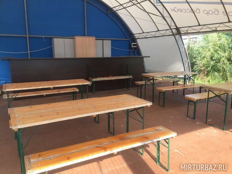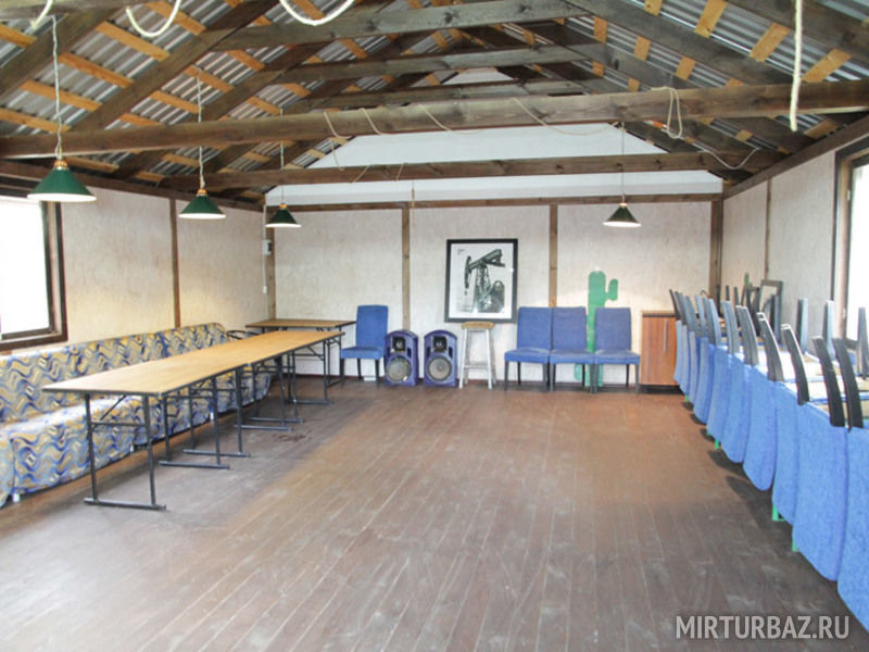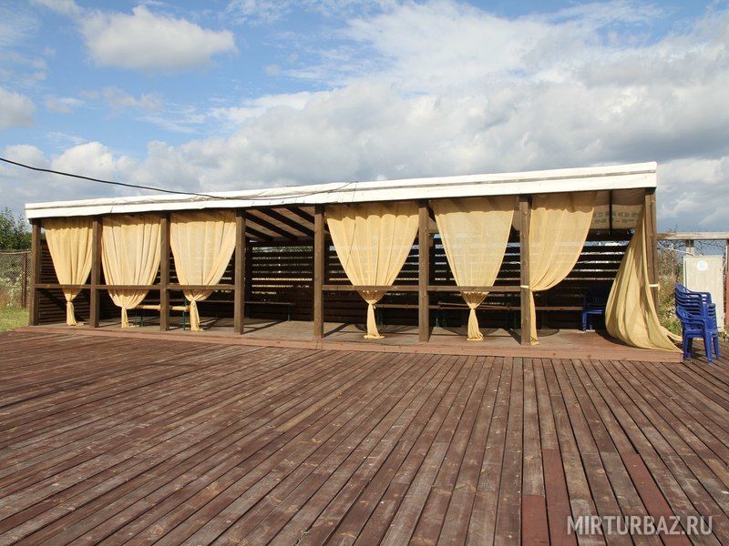 Есть еще одна беседка на территории базы для компании до 40 человек со столами и скамейками, мангал предоставляется. Оплачивается только аренда беседки. Есть розетка. Вы также можете принести свои продукты и напитки.