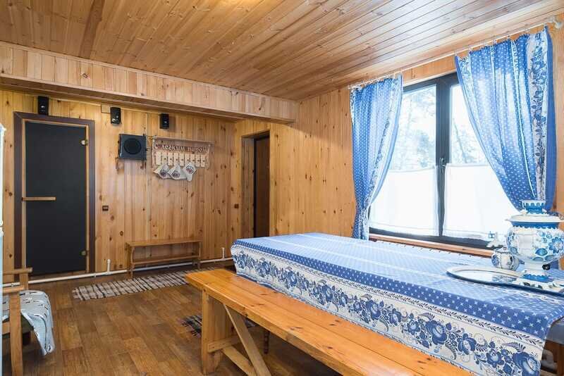Баня на дровах, вместимость 8-10 человек, комната отдыха в русском стиле. Есть возможность нанять парильщика.