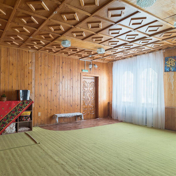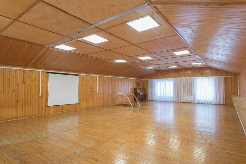 Зал расположен на 2-м этаже гостевого дома. Площадь 100м².