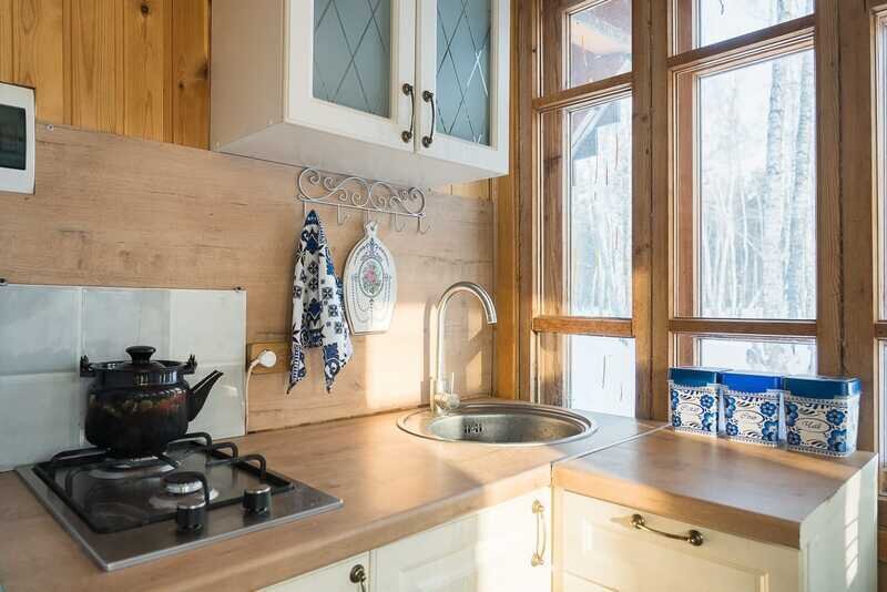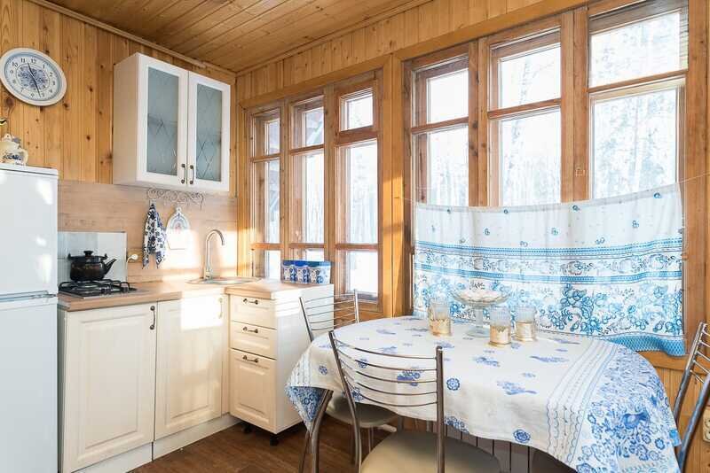 В доме две спальни, кухня-гостиная с панорамными окнами. Кухня полностью укомплектована.