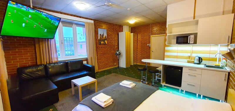 Путешествие с семьейУютно, как домаВ конце лета ездили всей семьёй в Новосибирск, перед школой выгулить детей и за покупками. Остановились в этом гостевом доме, номер люкс на 3м этаже. Номер большой, светлый, состоит из 2х комнат,как стодия. В большой комнате полноценная кухна, стиральная машина. А ещё дети оценили огромный телевизор и игровую приставку. На крыше бассейн и беседки с газовым грилем, после дневных гуляний очень приятно там отдохнуть. В подвале спортзал и тенисный стол. Утром вкусный завтрак, который входит в стоимость проживания. Рекомендую.