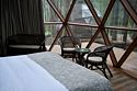 Wi-Fi, светильник, фен, электронные замки, обогреватель, душевая кабина, санузел, банные принадлежности, халаты, тапочки, кровать «King size», кресла, гардеробная, вешалки, журнальный столик, багажная тумба, зеркало, эксклюзивная мебель, чайный набор, сейф, чайник, мягкая мебель, питьевая вода, ковровое покрытие, отопление, стаканы, внутренний телефон, телевизор с плоским экраном, вид на залив, номер для некурящих, вид на лес, рабочий стол, мини-бар (платно), без питомцевВ гостиничном номере