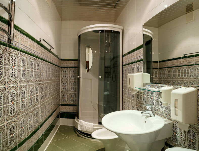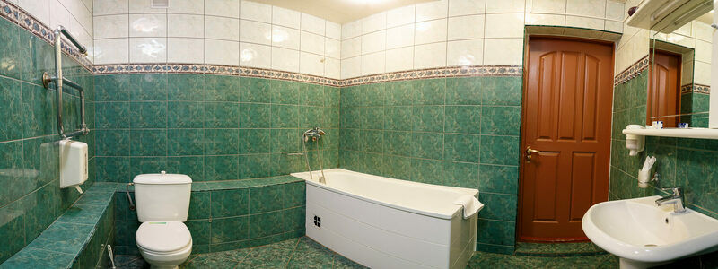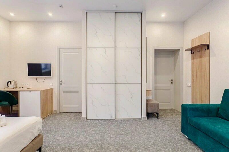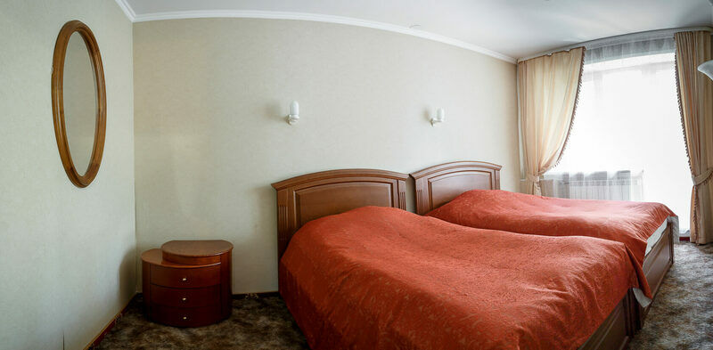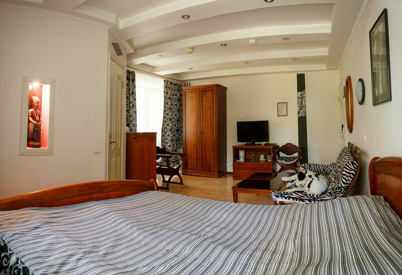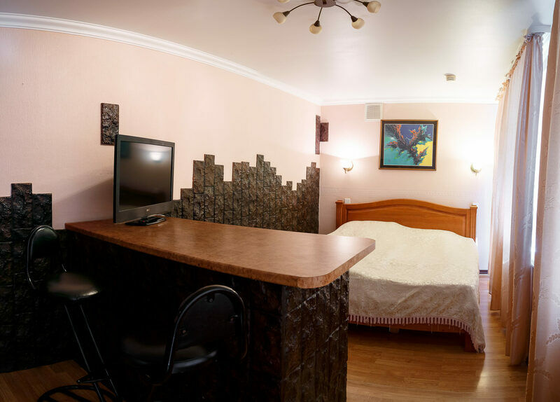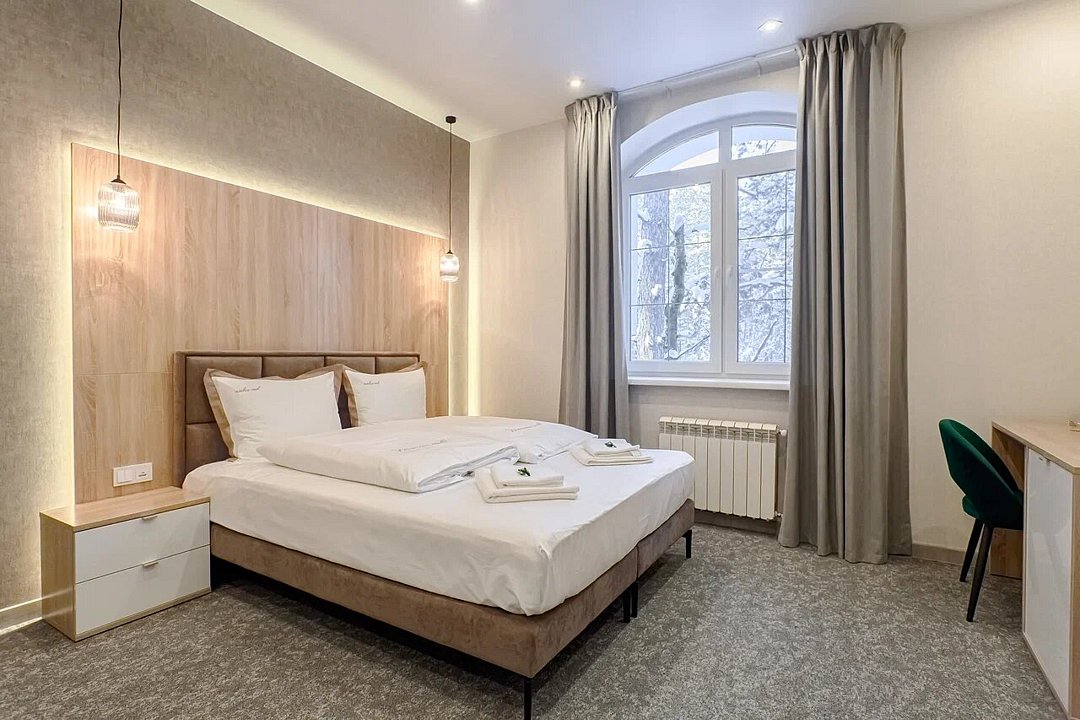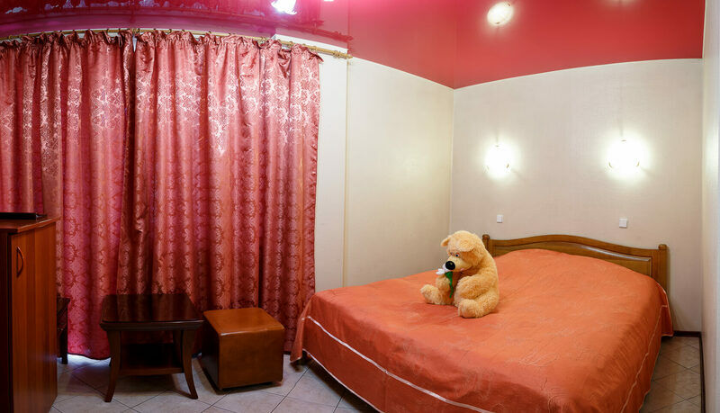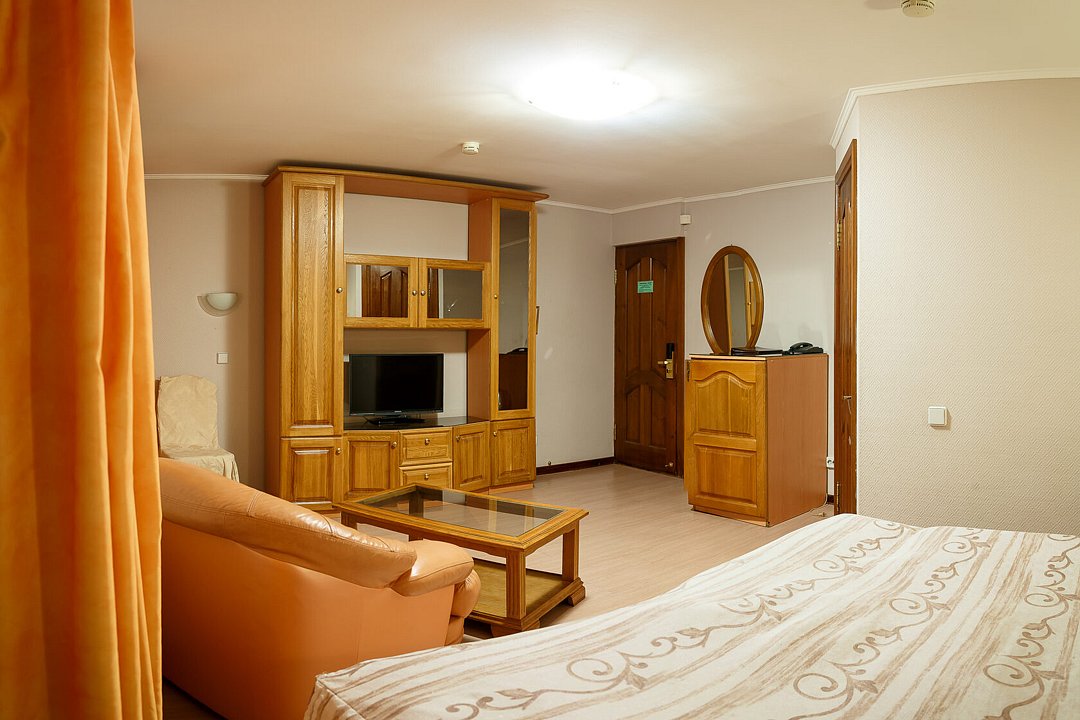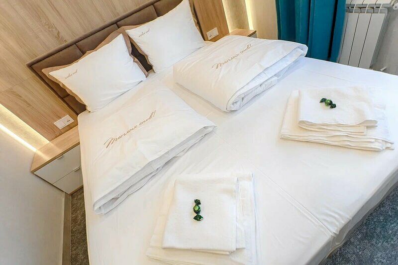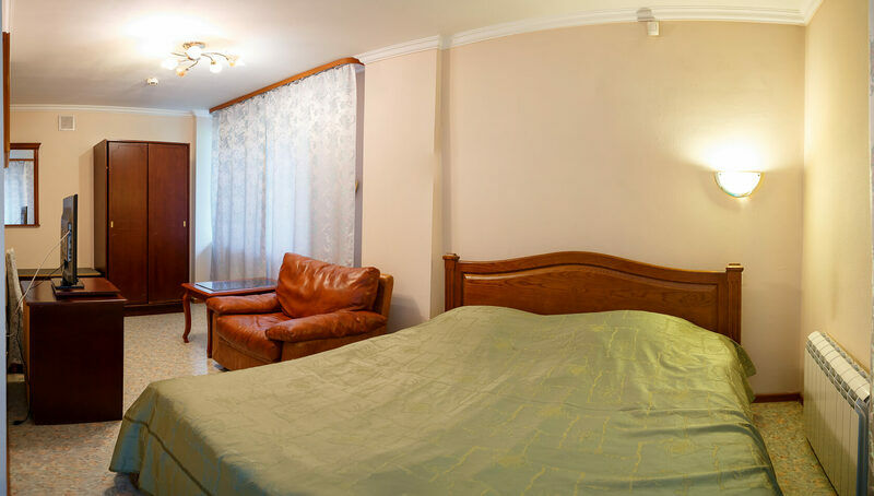 Однокомнатный номер, двуспальная кровать, телевизор, вместительный шкаф, кондиционер. Санузел с ванной и всеми необходимыми принадлежностями (фен, зубной набор, гель для душа, шампунь, халаты, тапочки).