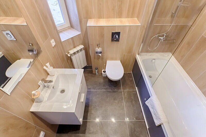 Двуспальная кровать, кондиционер, телевизор, чайник, ванна