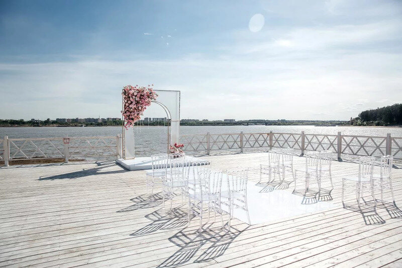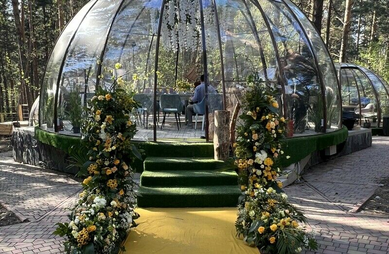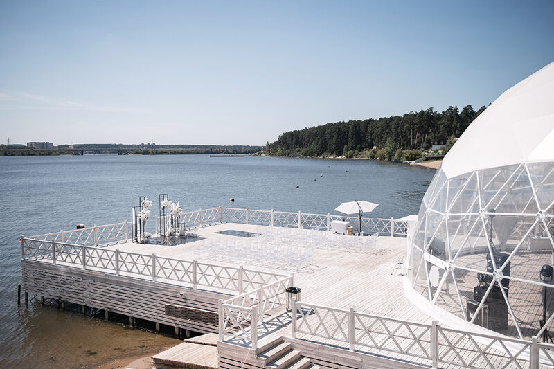 Общая площадь купола 350 кв.м, высота 9 м, сфера оборудована системой климат-контроля. Вместимость до 120 человек. Выход на пирс площадью 500 кв.м, идеальное место для регистрации под открытым небом с видом на Бердский залив.
