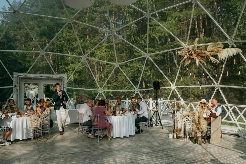 10) Бронирование — предоплата 50 000 ₽ + договор.Сфера «Лесная» – атмосферное место для уютного торжества