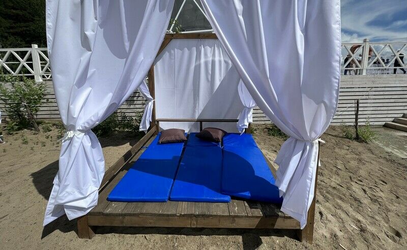 Инфраструктура: лежаки, зонтики, шезлонгиПесчаный пляж