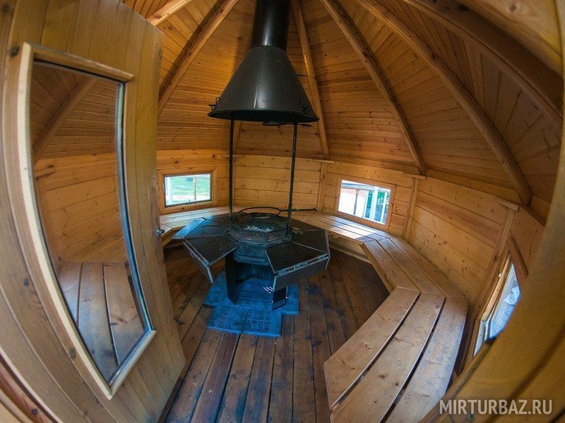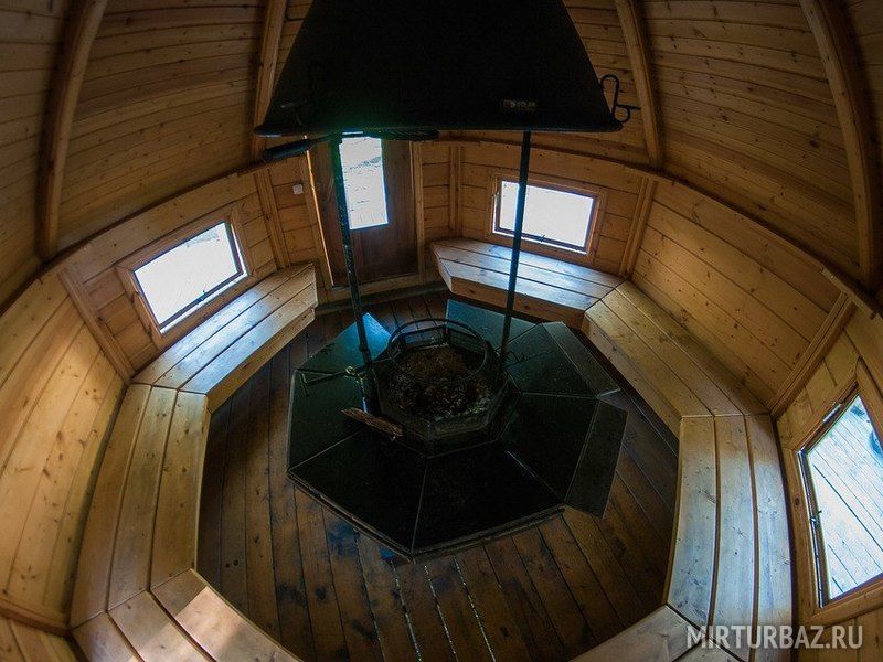 Подогреваемые джакузи с гидромассажем, аэромассажем и ароматерапией под открытым небом (эксплуатируются до -25°С, температура воды —до +40°С). Каждая джакузи рассчитана на 5-7 посадочных мест.