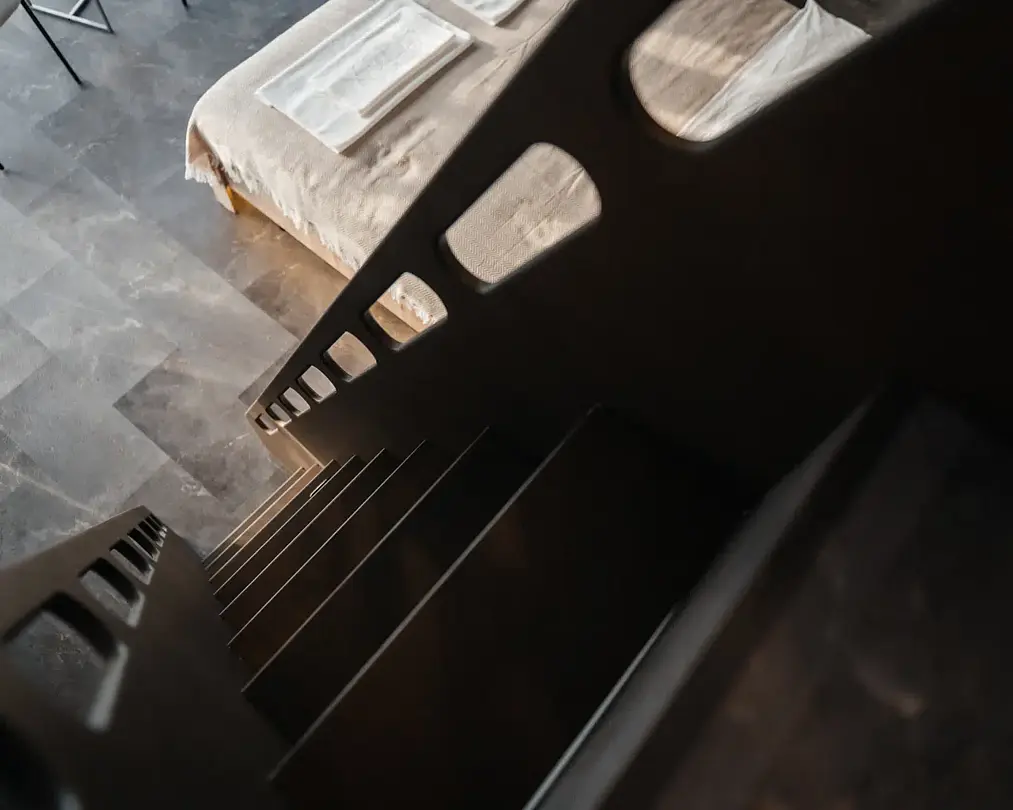 Двуспальная кровать king size на первом этаже, 2 спальных места на мезонине, санузел с душевой кабиной и собственная терраса с мангальной зоной. Рассчитан на проживание до четырех гостей.