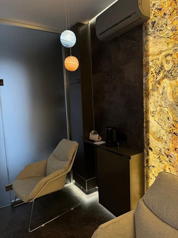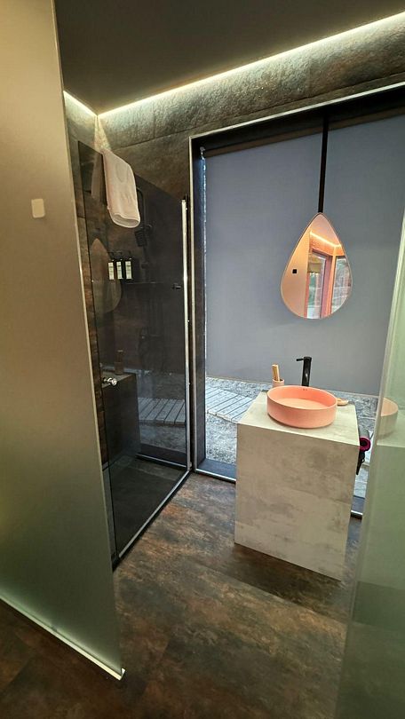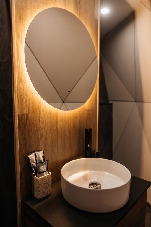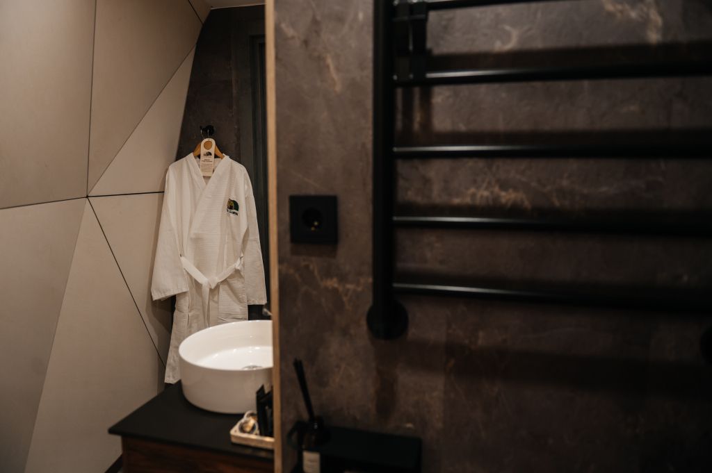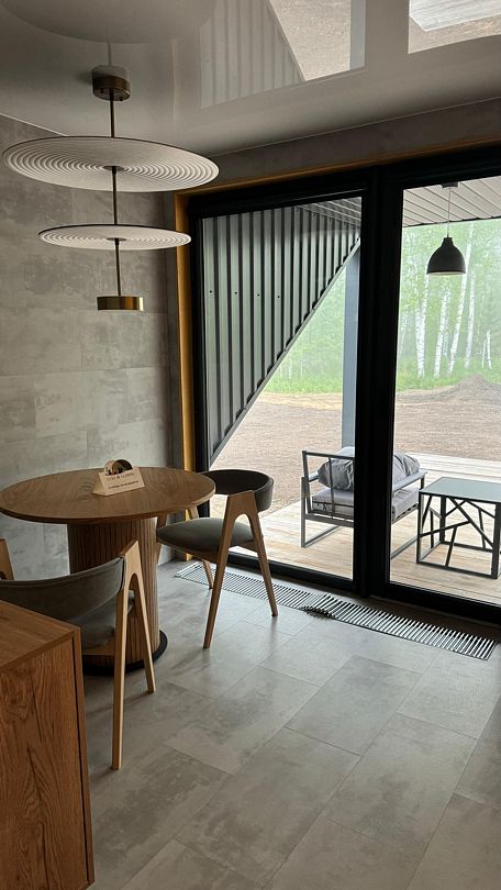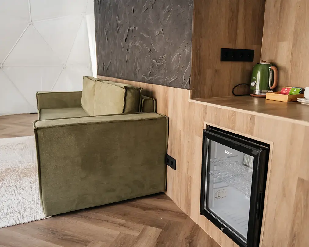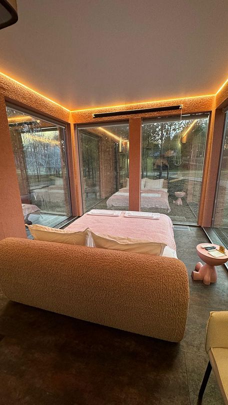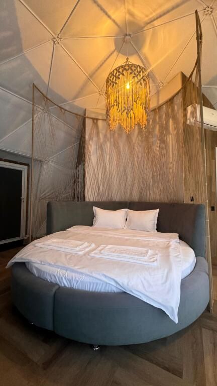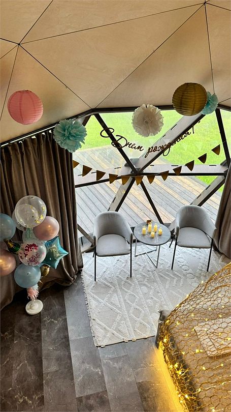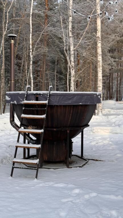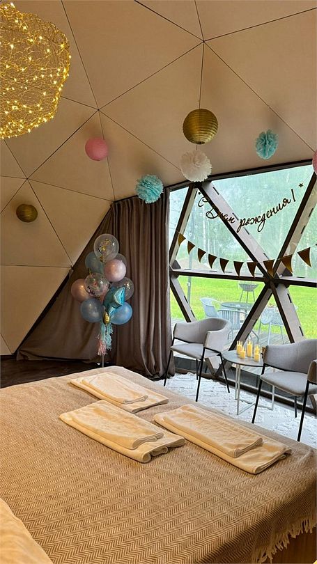Уникальный дом-сфера площадью 38 м2, выполненный в стильном и современном дизайне. Одной из главных особенностей дома является наличие купели, которая является местом, где Вы сможете расслабиться и насладиться удивительными ощущениями тепла и приятного аромата. Купель оснащена всем необходимым оборудованием, что позволяет нашим гостям в полной мере насладиться пребыванием в ней.