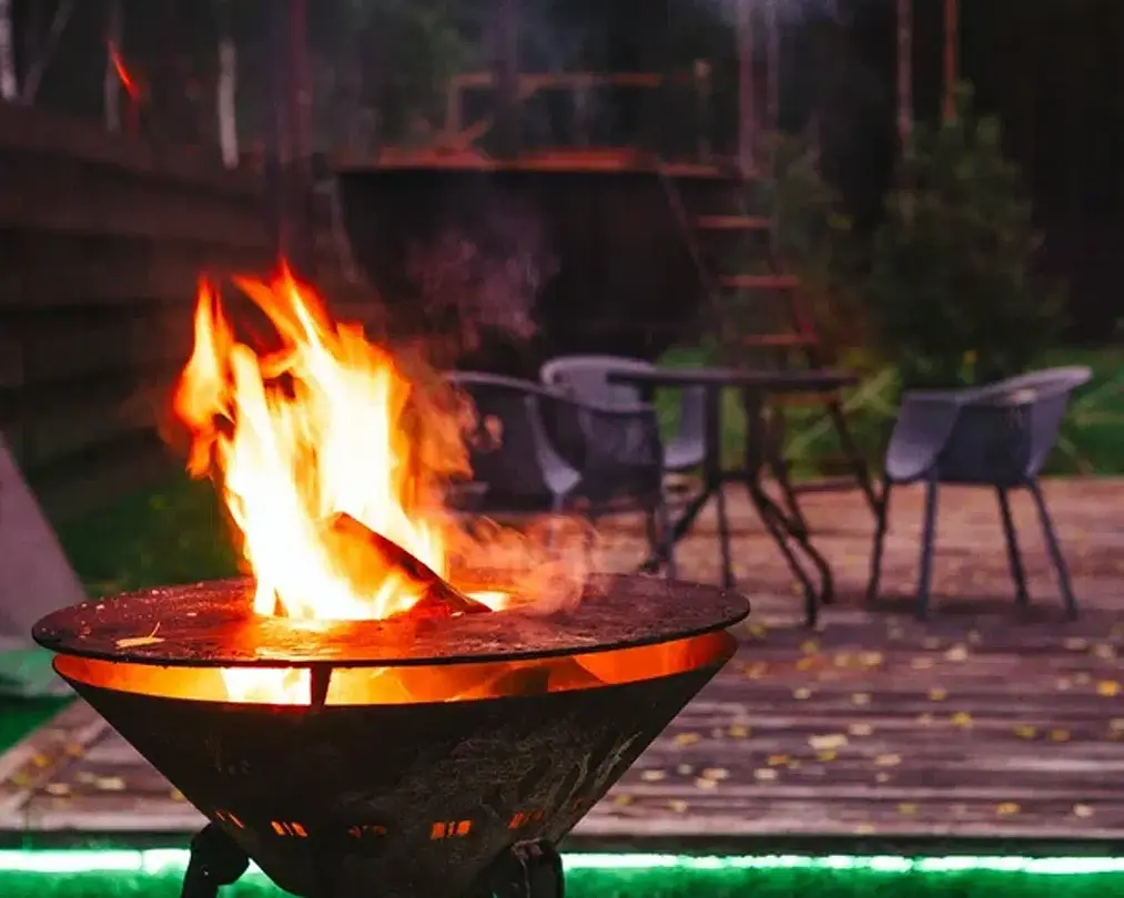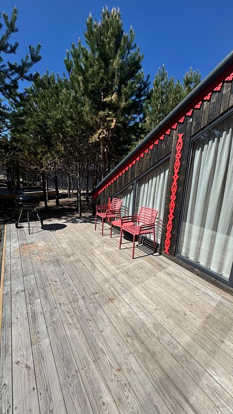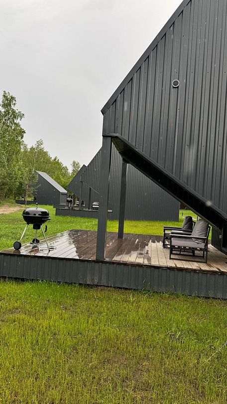 Каждый домик оборудован угольным грилем и уличной мебелью на террасе.