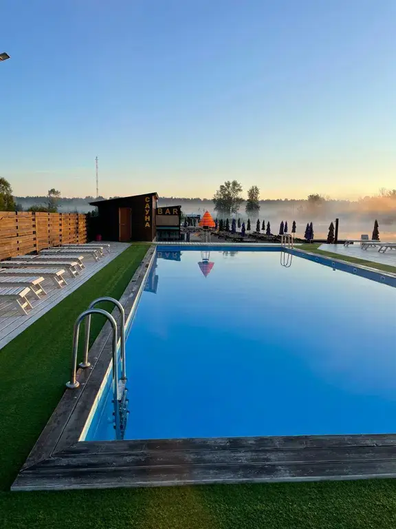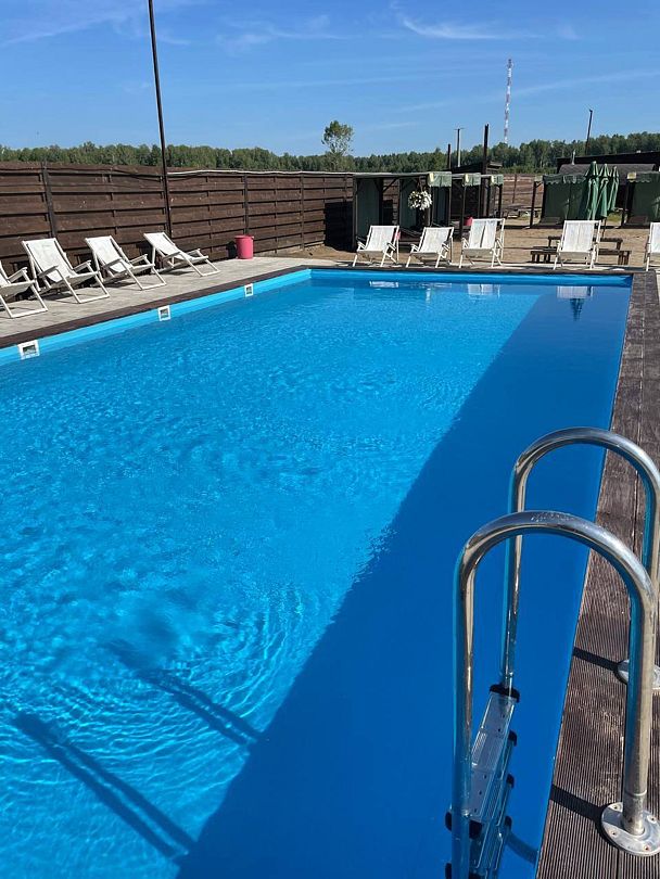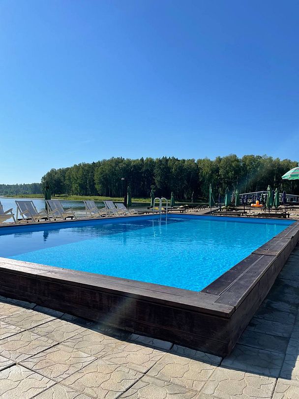 - для отдыхающих весь сезон работают два просторных бассейна (20*10 м и 10*5 м), в которых можно наслаждаться купанием тем, кто предпочитает искусственные водоемы натуральным. Взрослый бассейн — глубже (1,5 м), с более прохладной водой и стильным искусственным водопадом. Детский мельче (0,6 м), размером 12*6 м, и оснащен подогревом 26-28 градусов. Пространство вокруг оборудовано настилами из натурального дерева и аккуратным газоном, на котором тоже можно уютно устроиться для приема солнечных ванн.