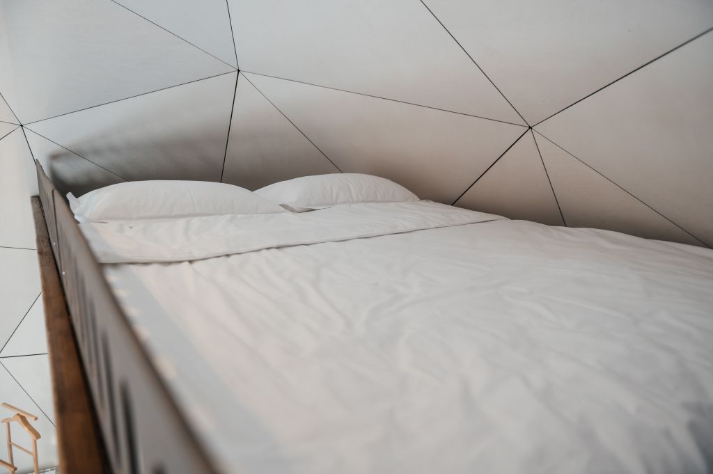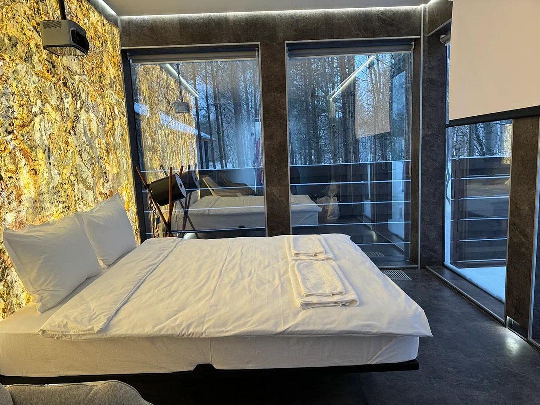 Зеркальные домики, сливающиеся с природой, создают ощущение полного единения с лесом. Двуспальная кровать queen size (160*200). Рассчитан на проживание двоих гостей, с возможностью поставить одно дополнительное спальное место.