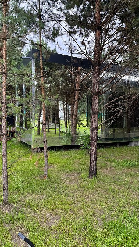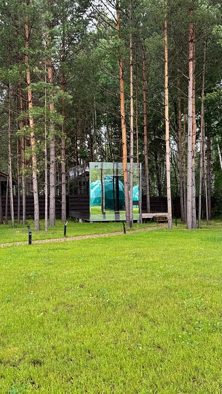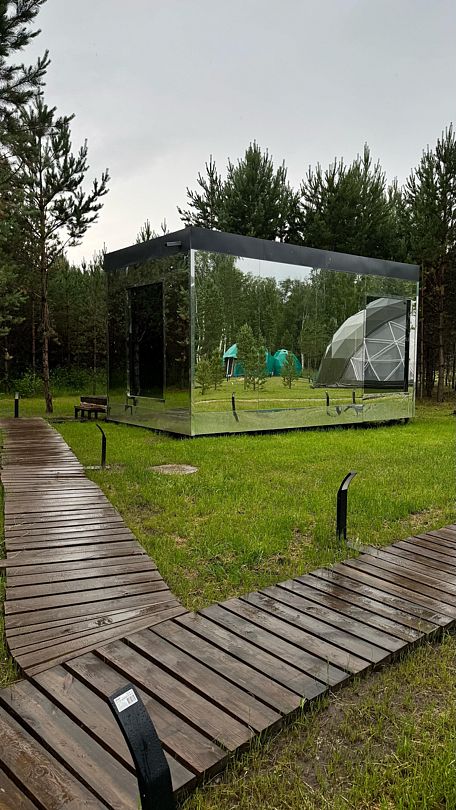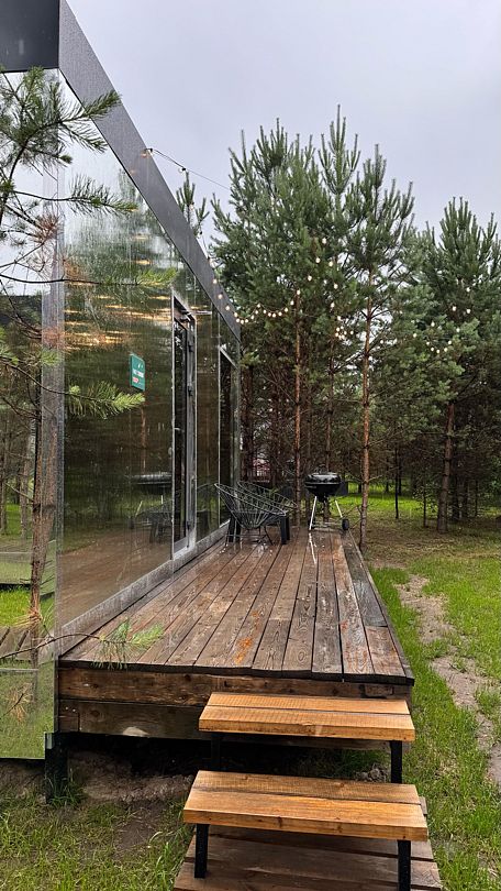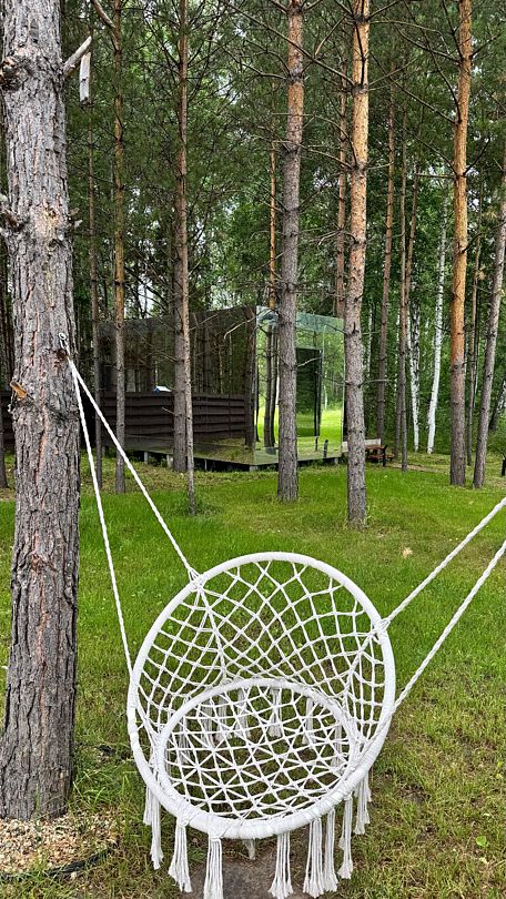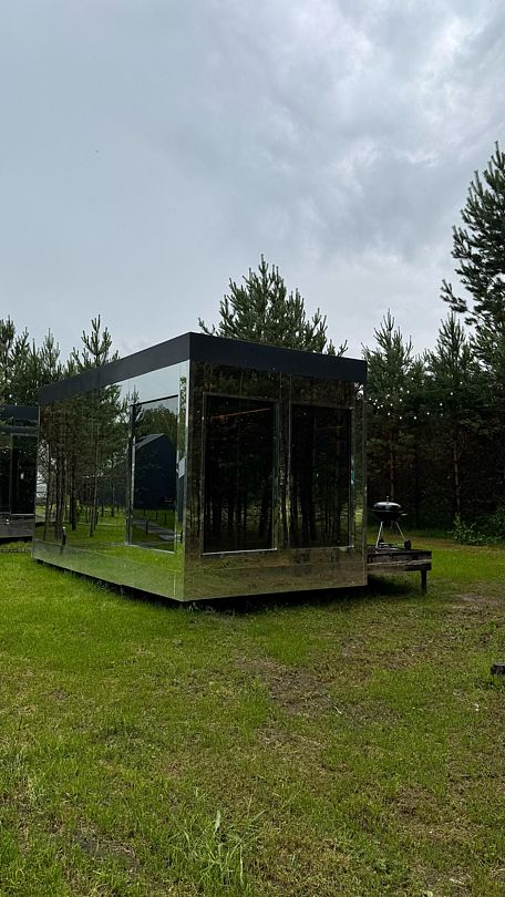 Зеркальный домик с красивым видом в спокойном дизайне, располагающем к отдыху. Двуспальная кровать queen size (160*200). Рассчитан на проживание двоих гостей.